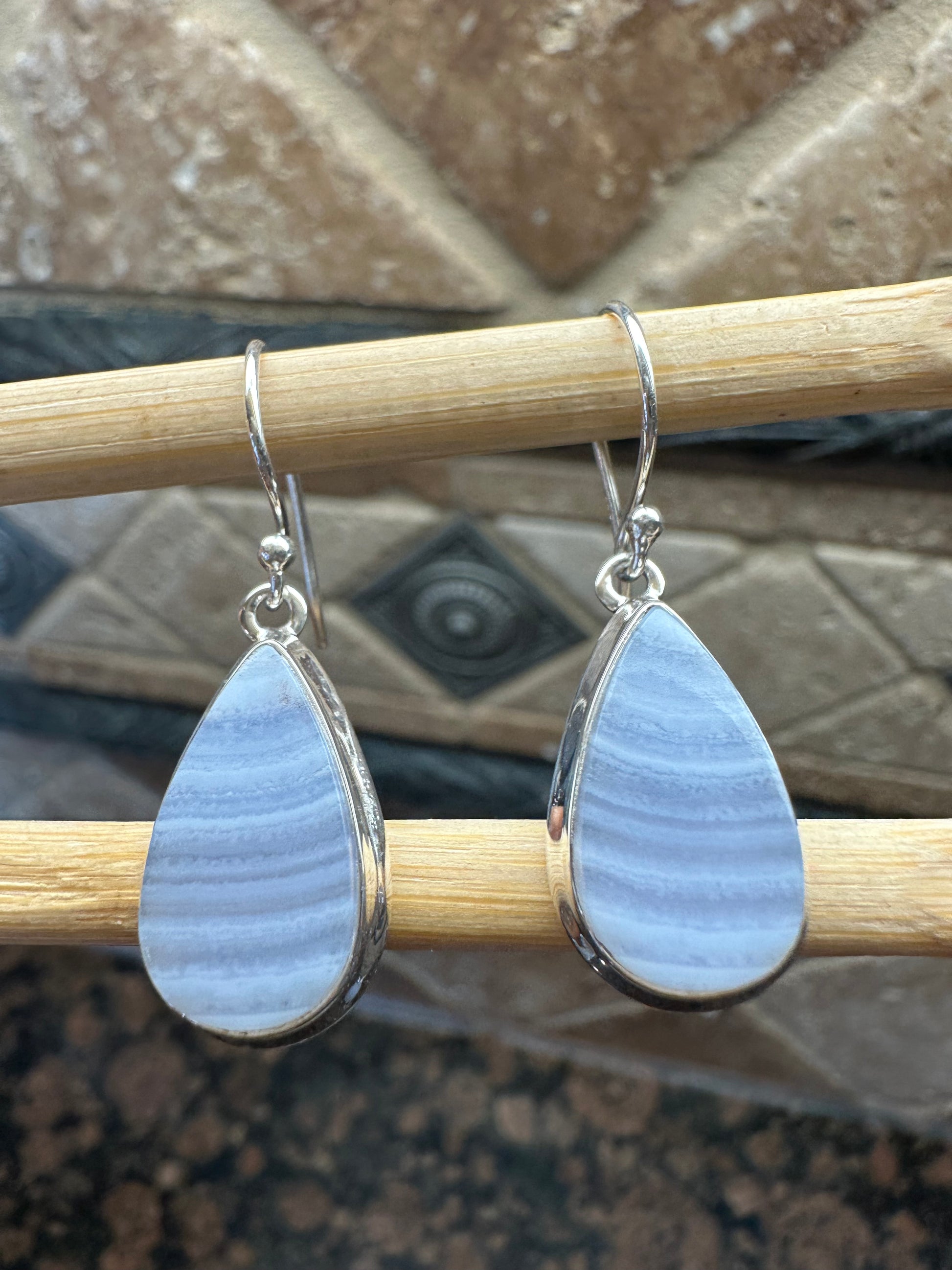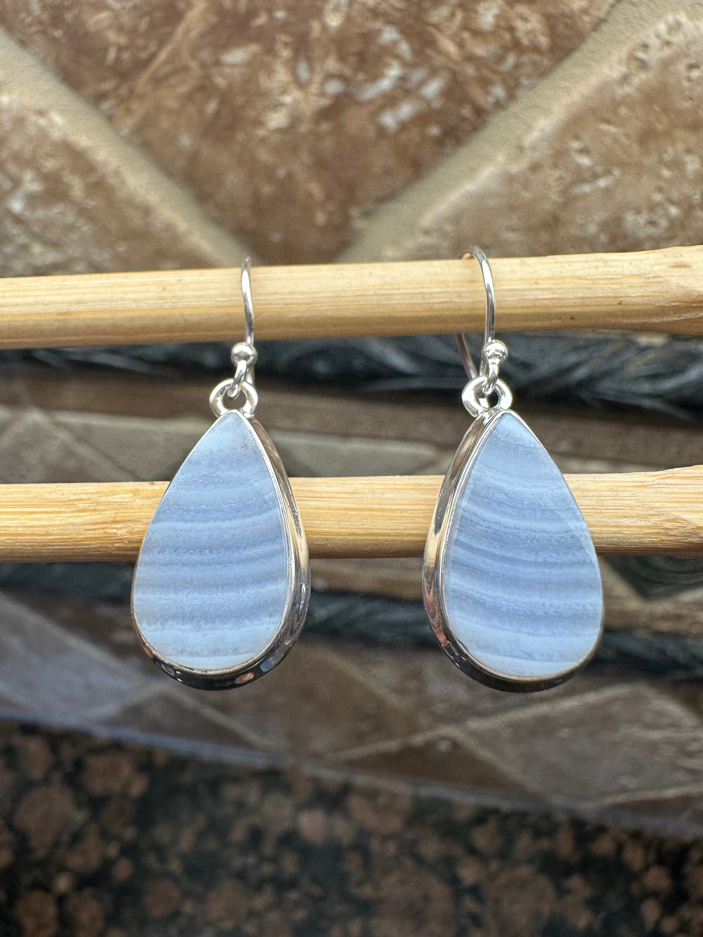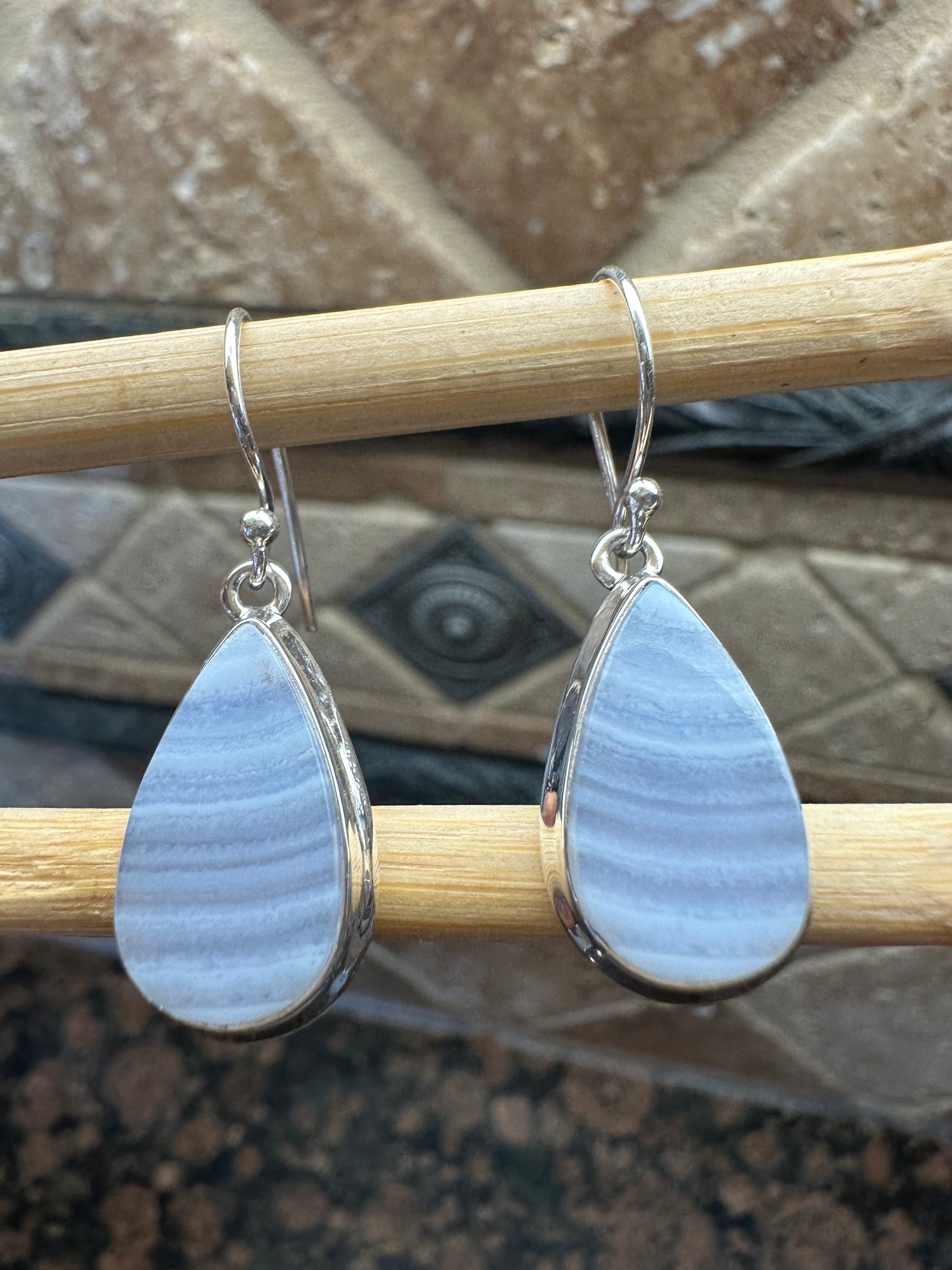 Natural Blue Lace Agate 925 Sterling Silver Earrings 35mm
