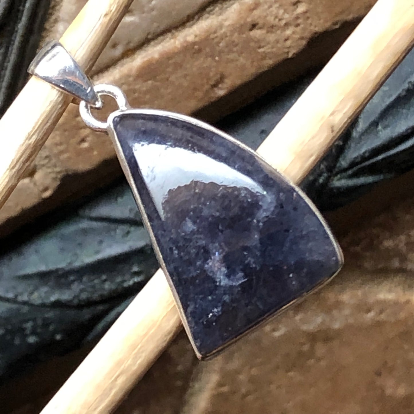 Natural Cabochan Iolite 925 Solid Sterling Silver Pendant 35mm