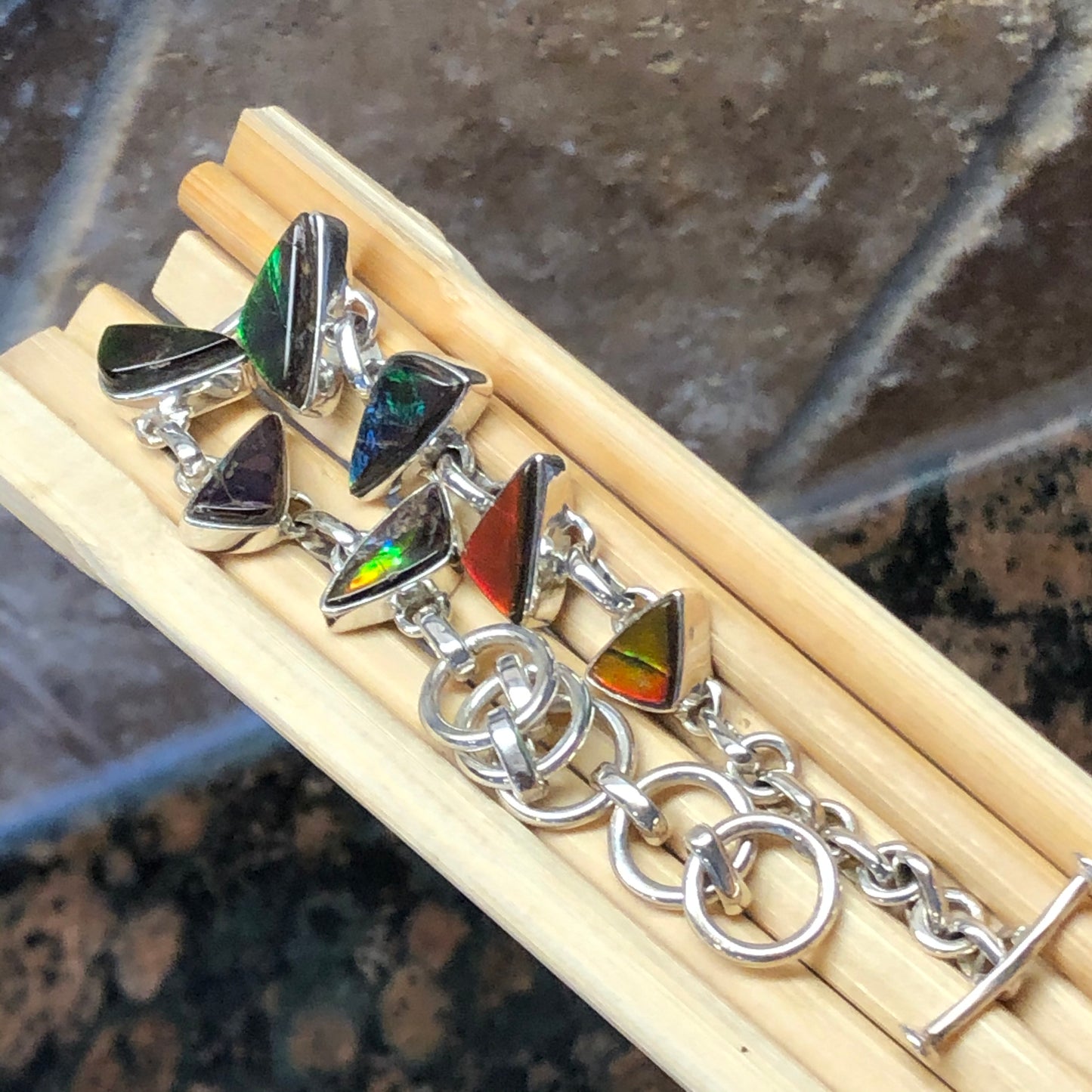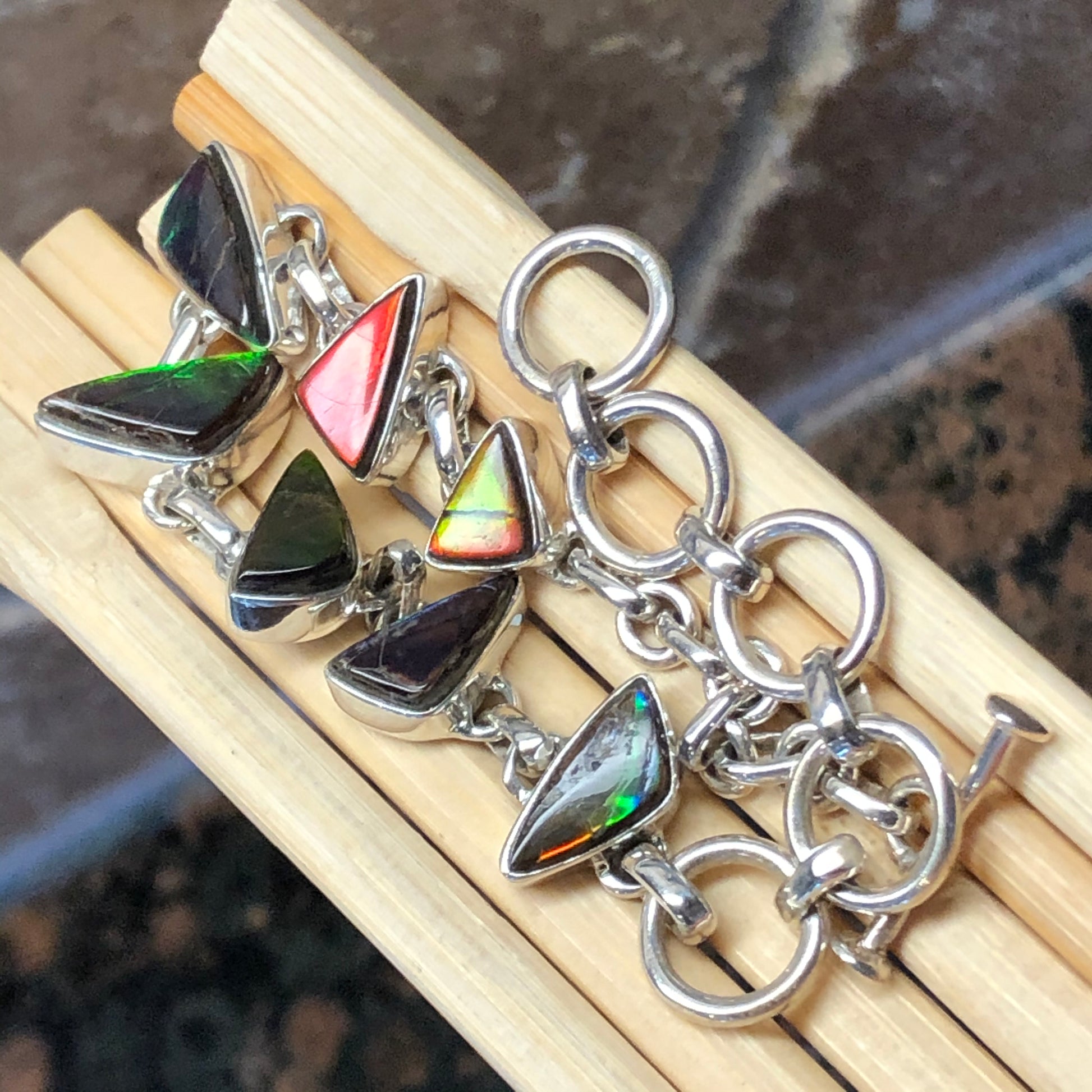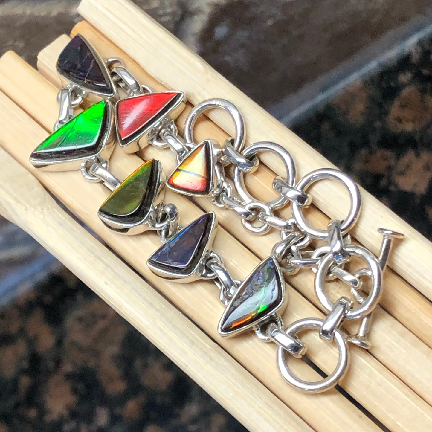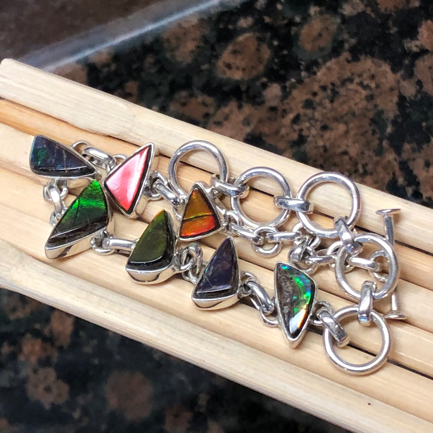 Natural Canadian Ammolite 925 Solid Sterling Silver Bracelets 7"