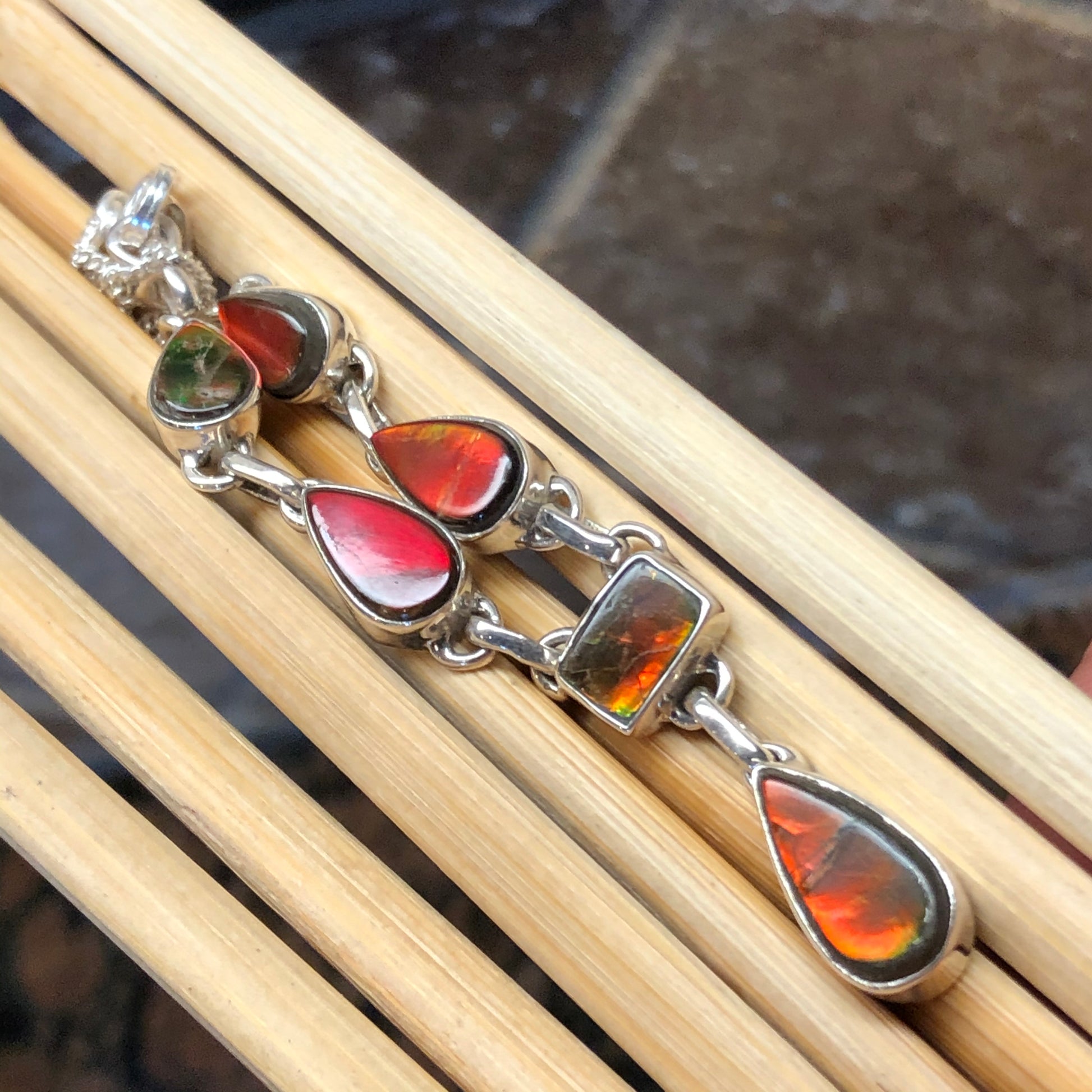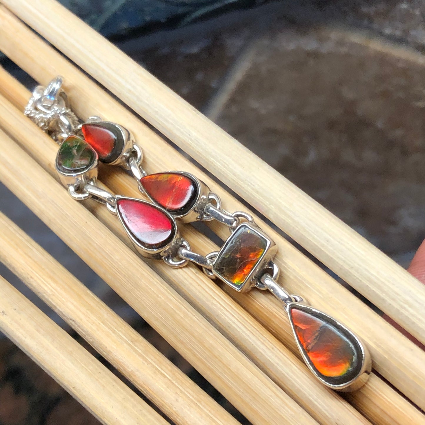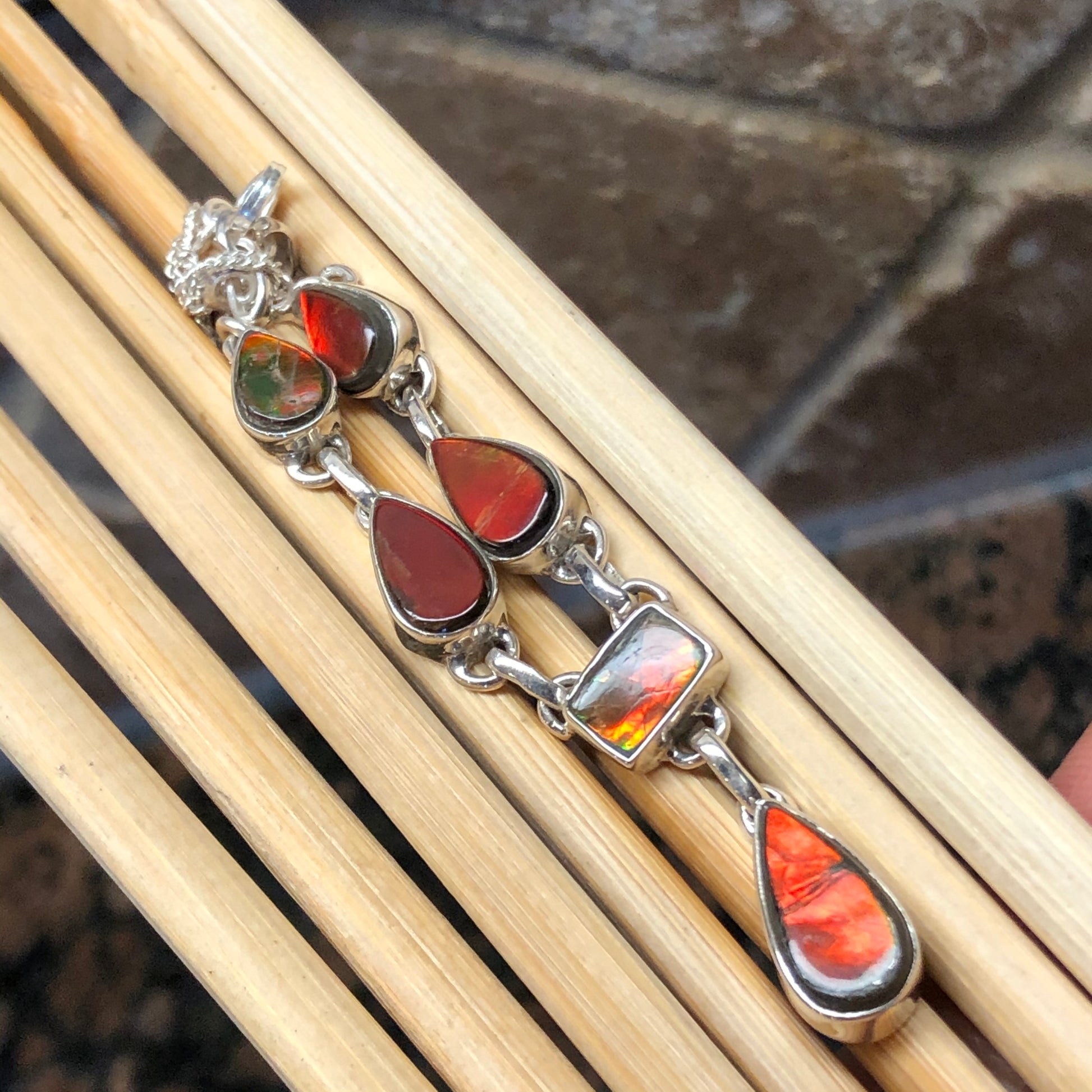 Natural Canadian Ammolite 925 Solid Sterling Silver Necklace 17"