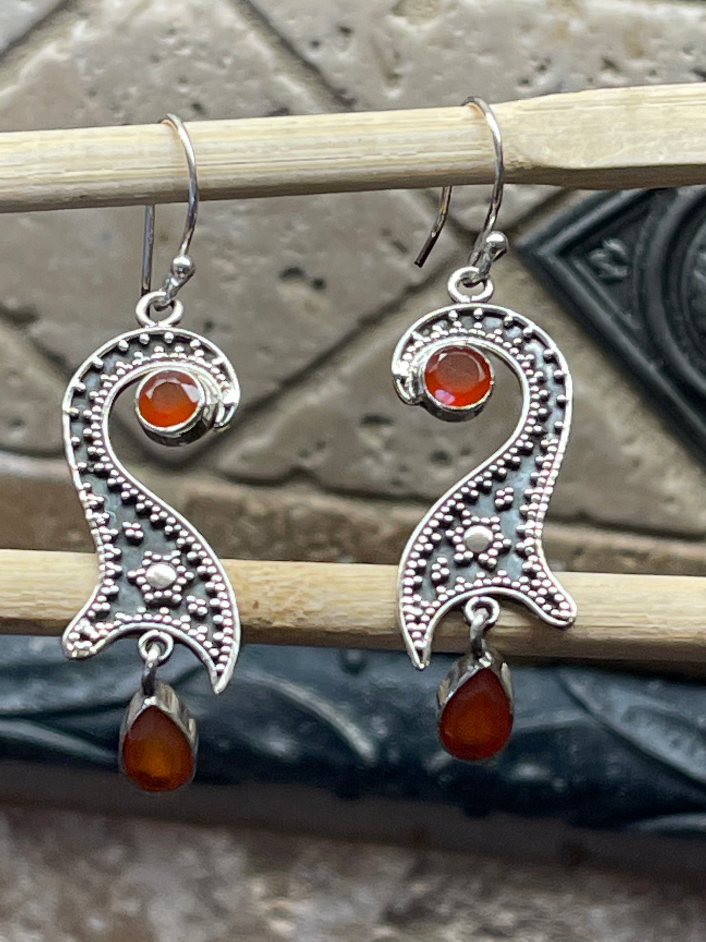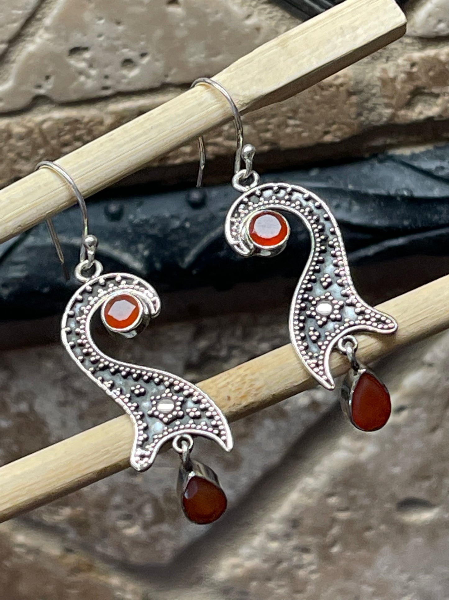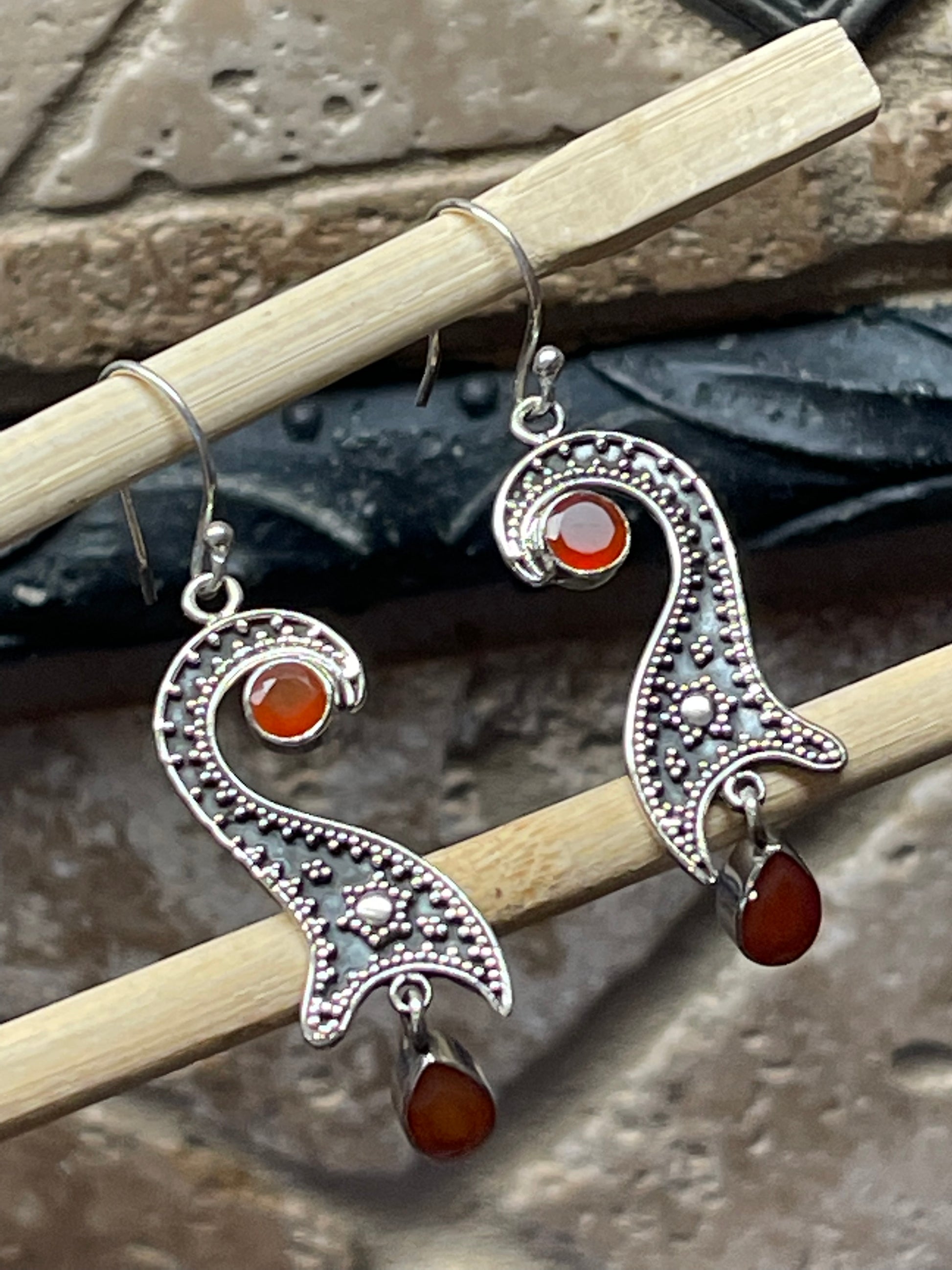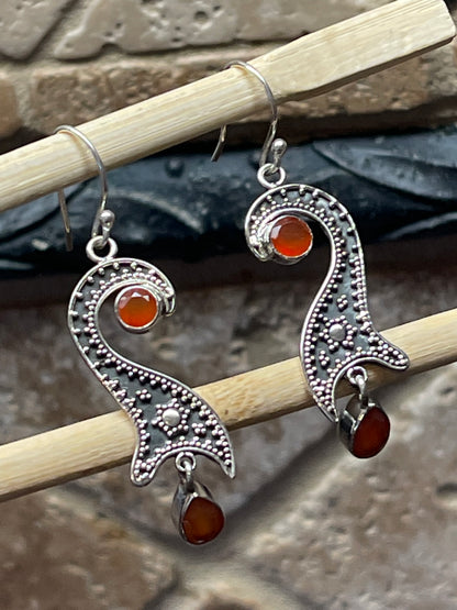 Natural Carnelian 925 Solid Sterling Silver Earrings 50mm