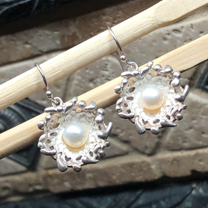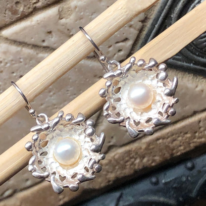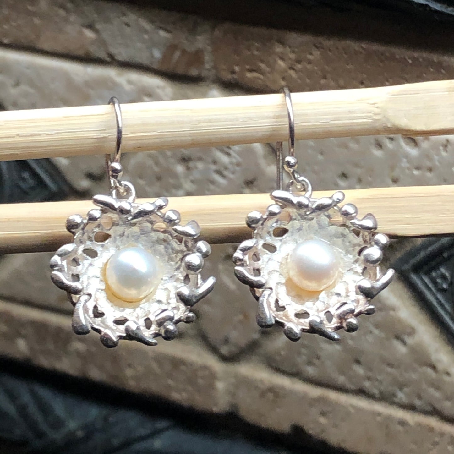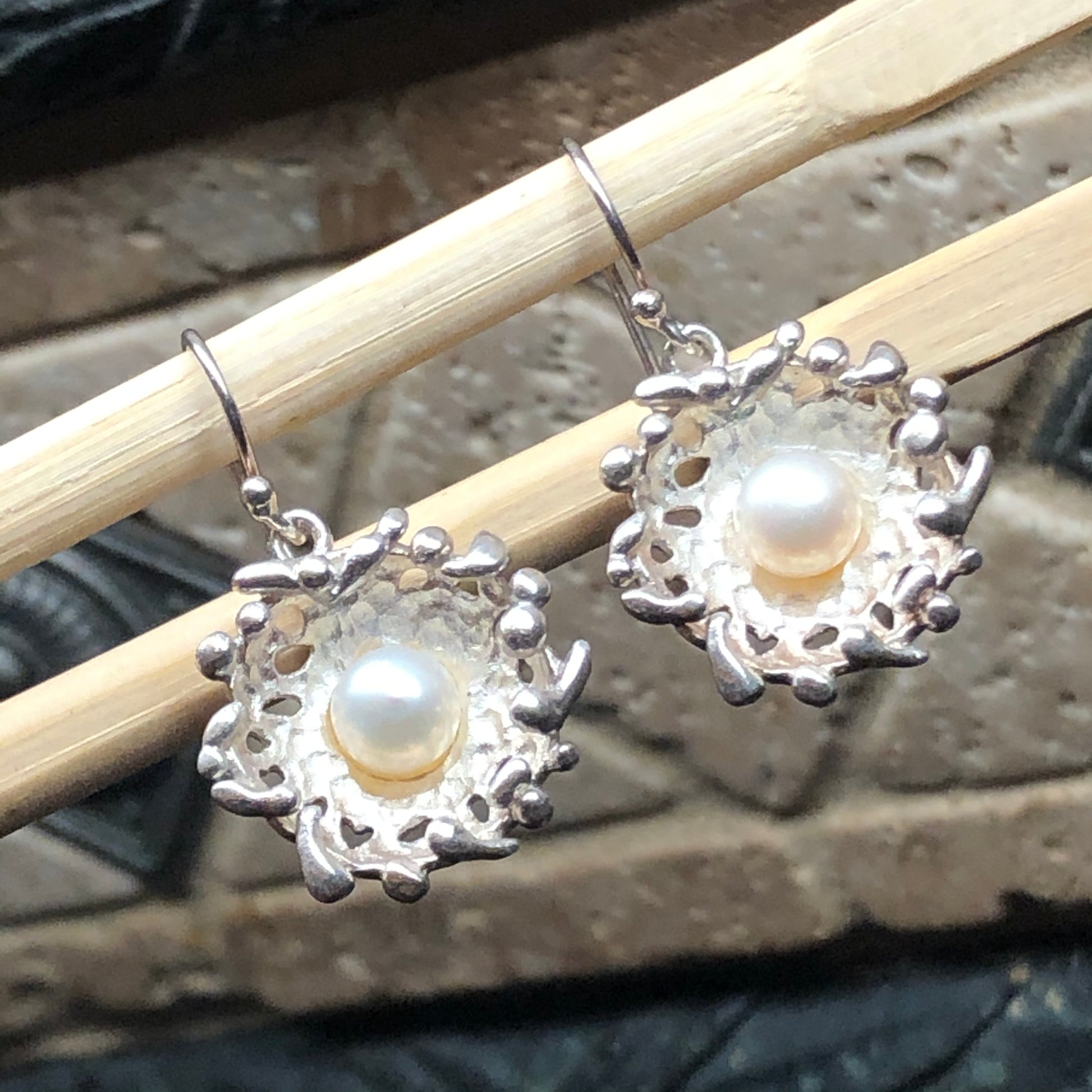 Natural Freshwater Cultured Pearl 925 Solid Sterling Silver Earrings 30mm