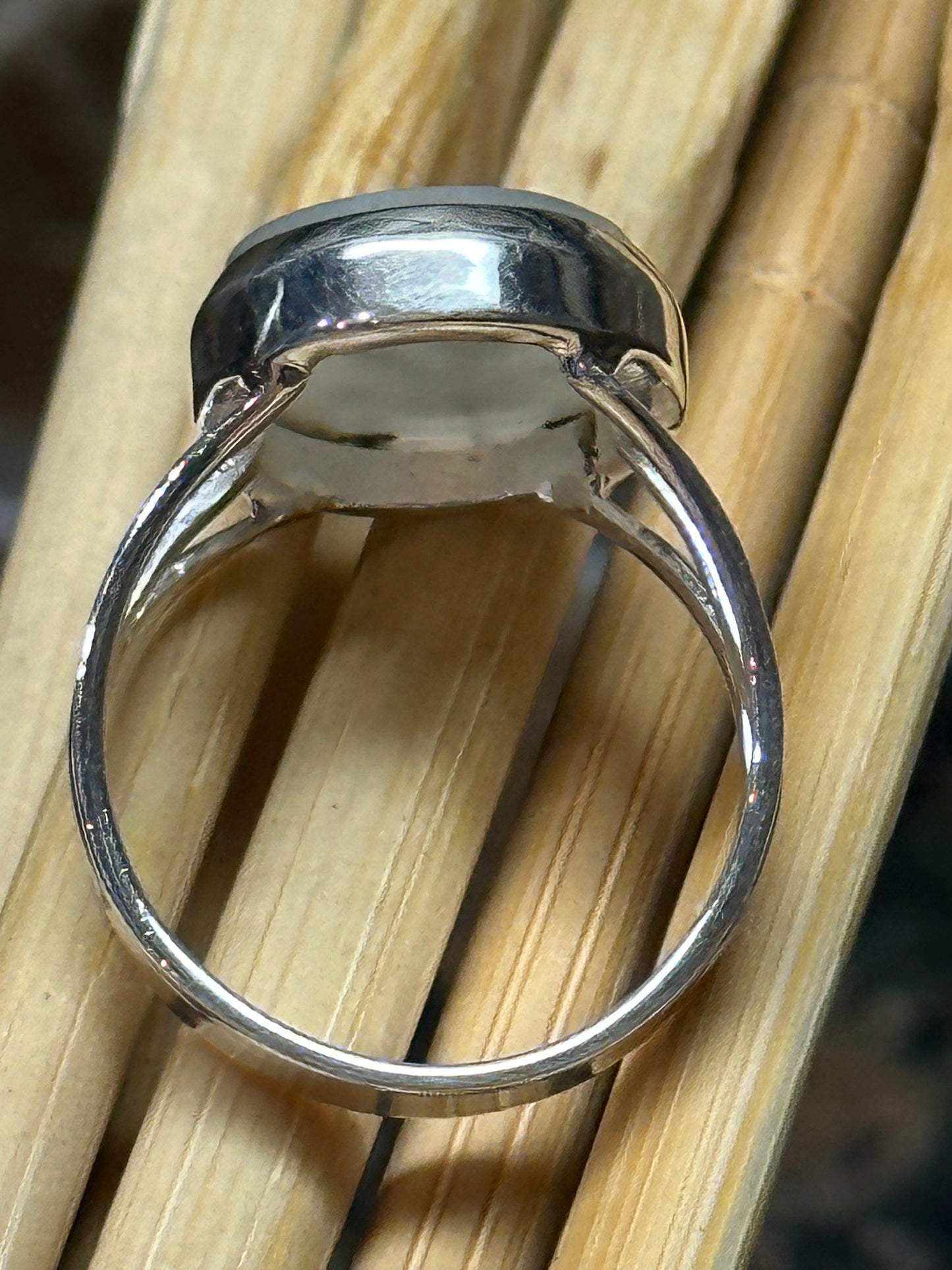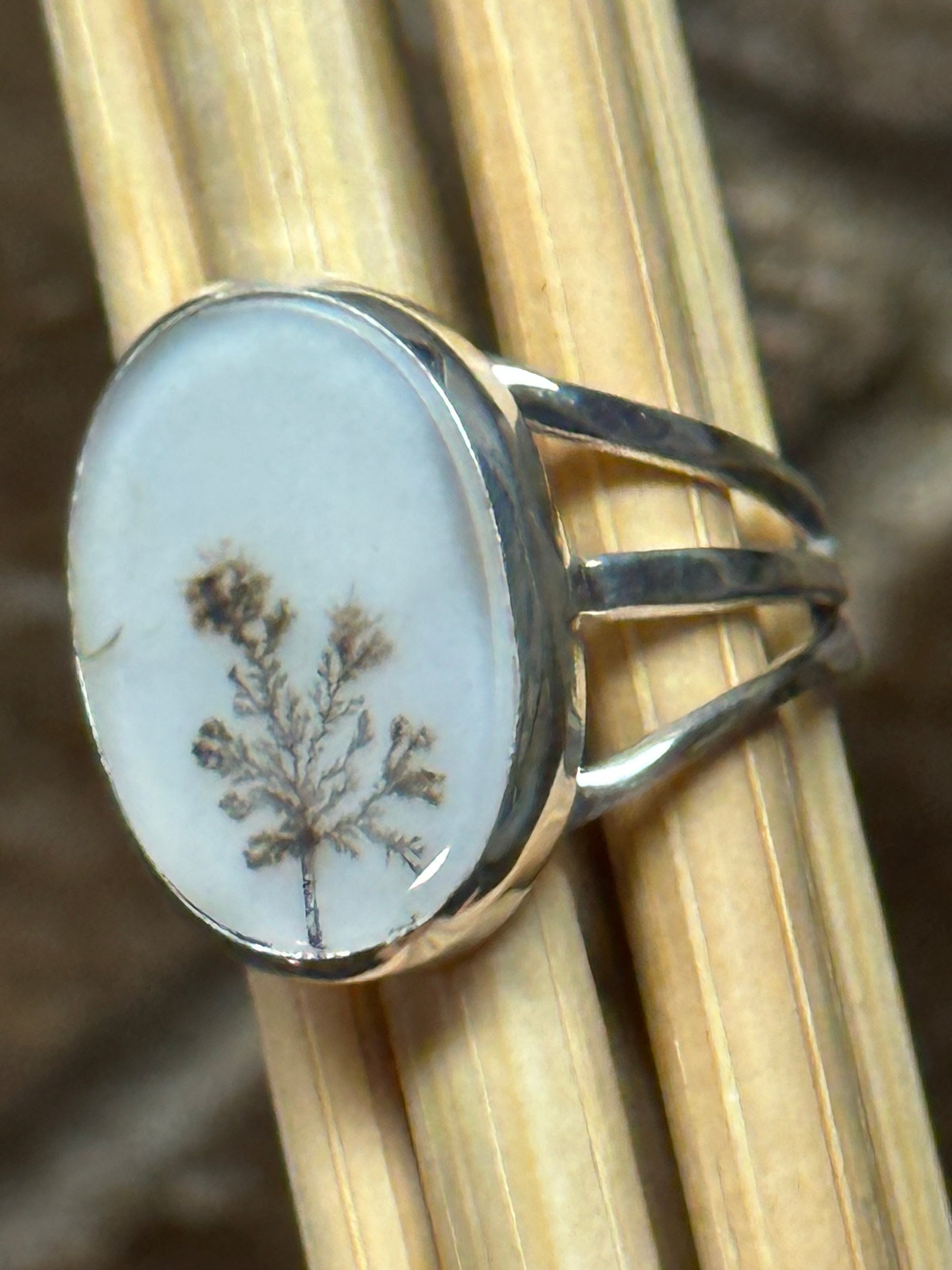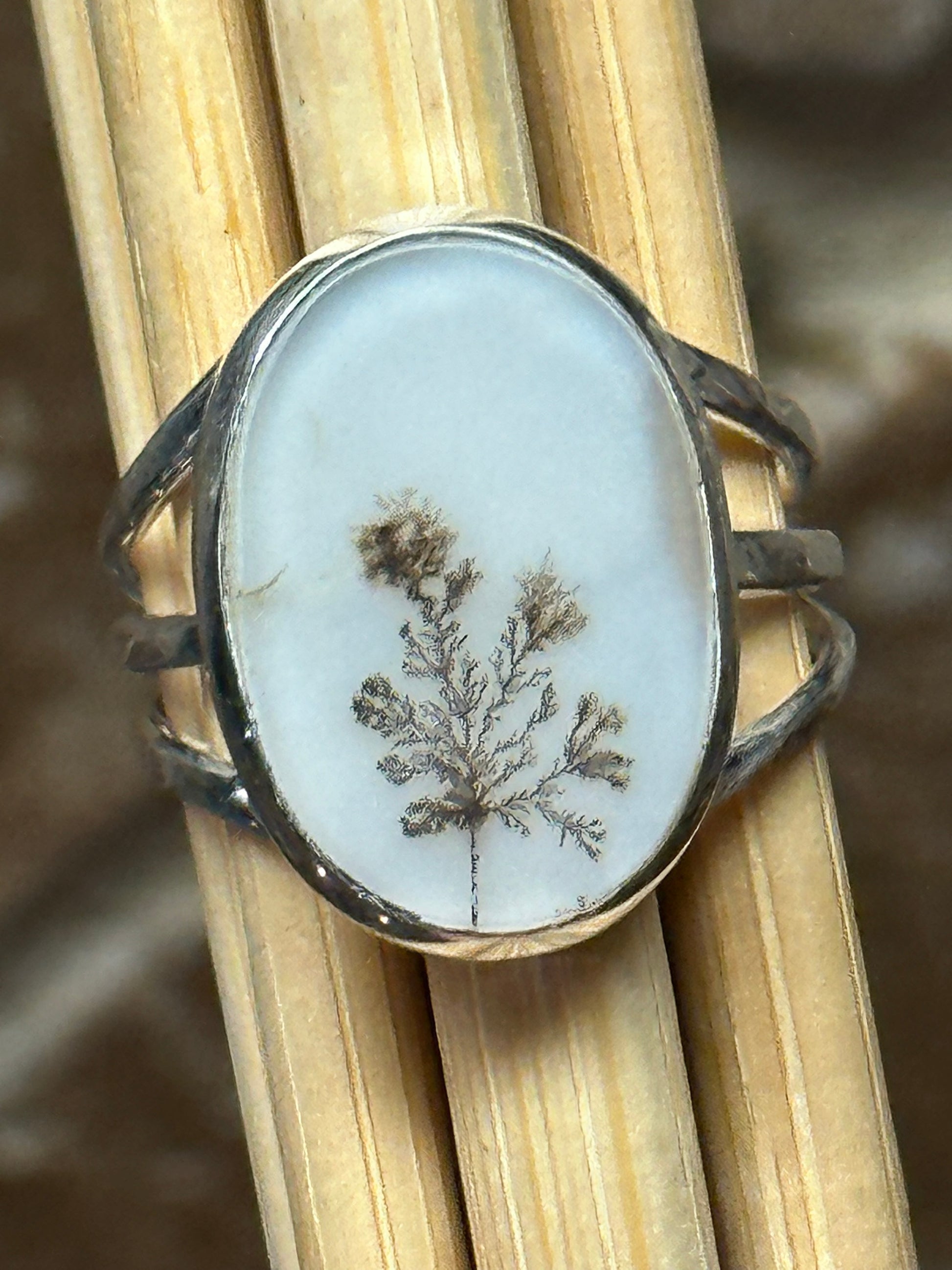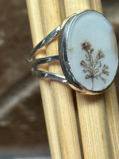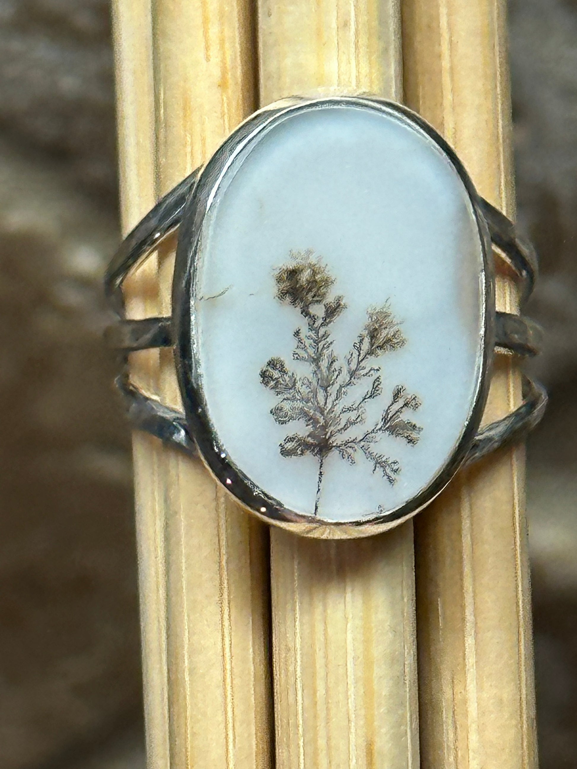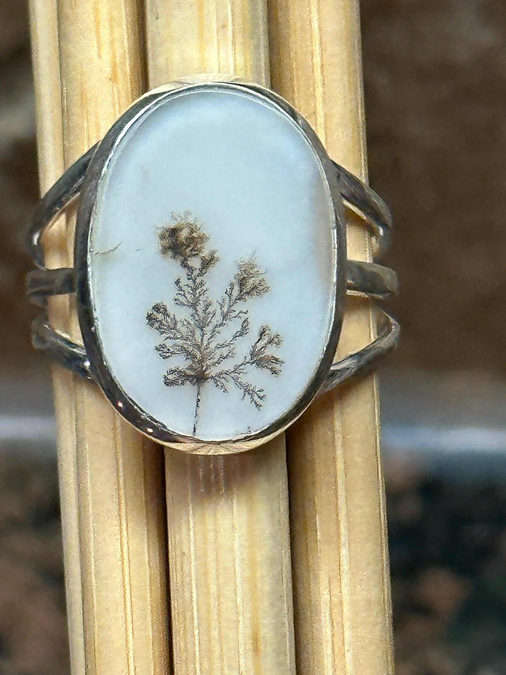 Genuine Georgian Scenic Dendritic Agate 925 Sterling Silver adjustable Ring Size 8.25
