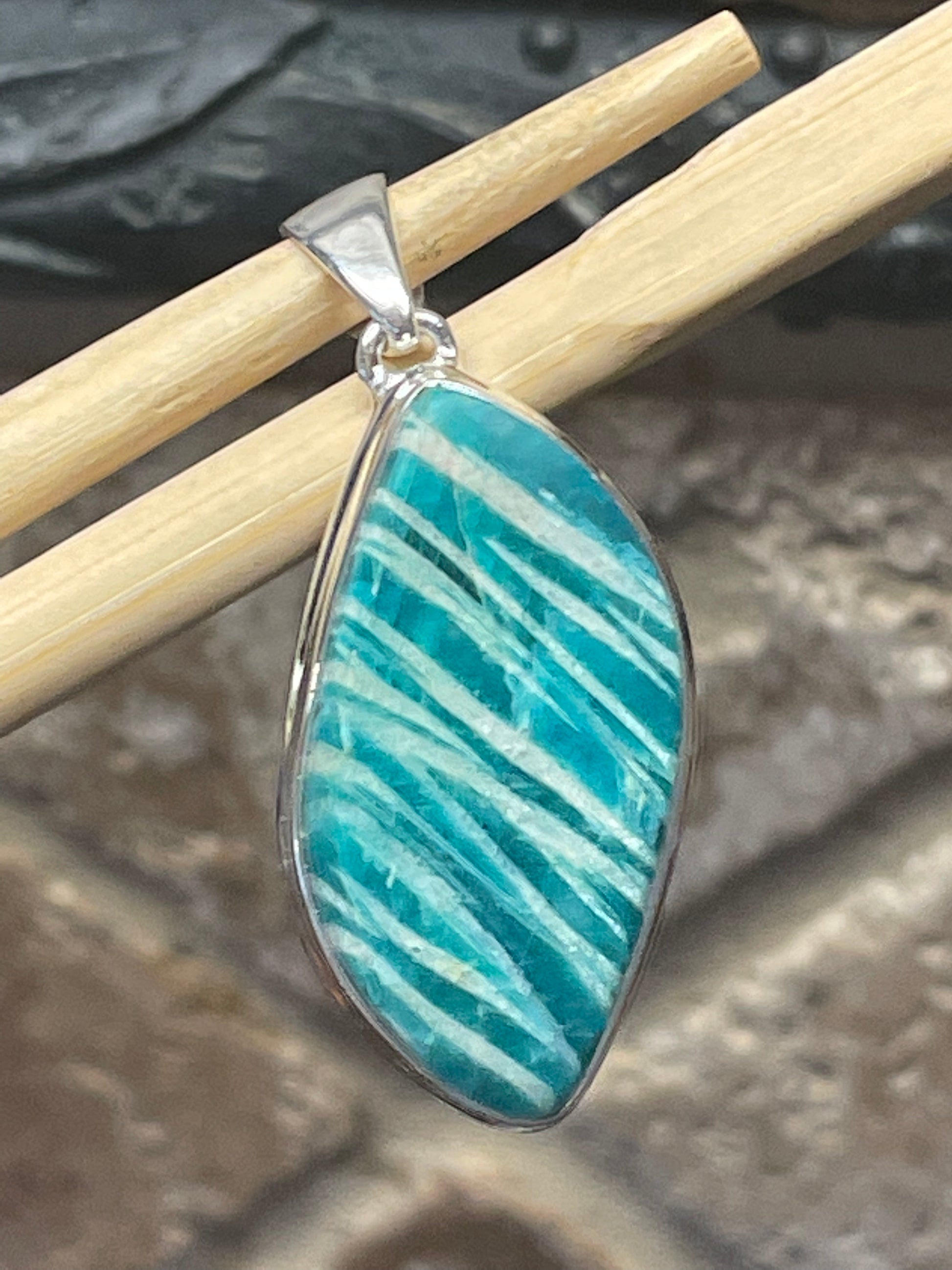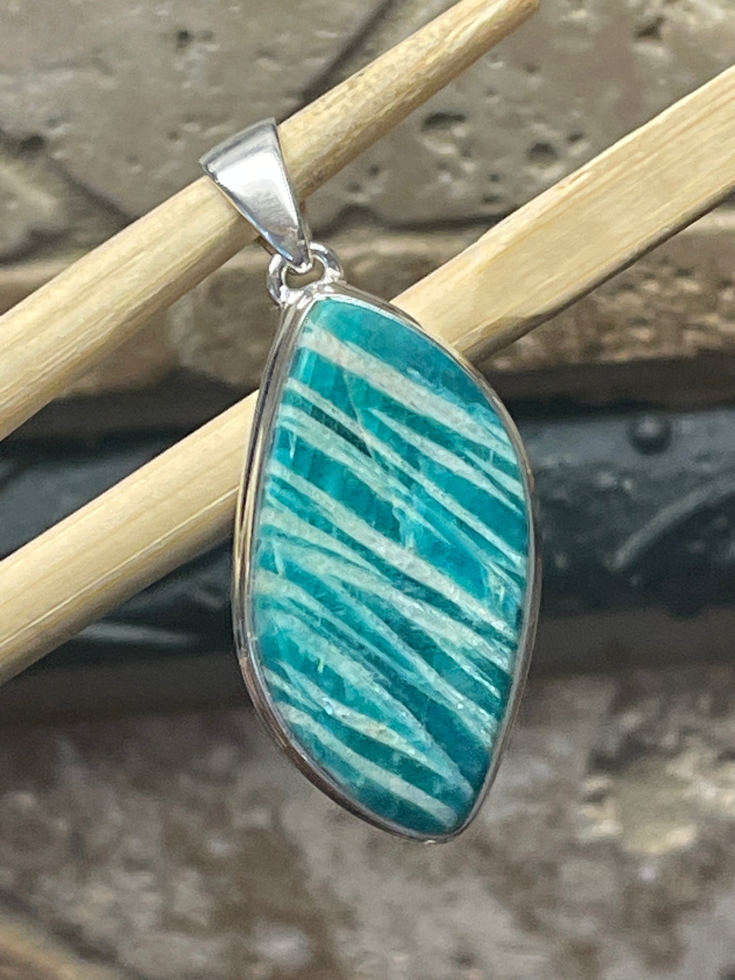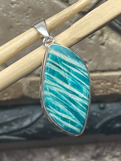 Natural Green Amazonite 925 Solid Sterling Silver Pendant 40mm