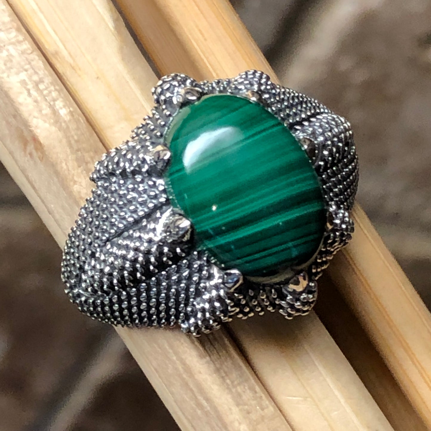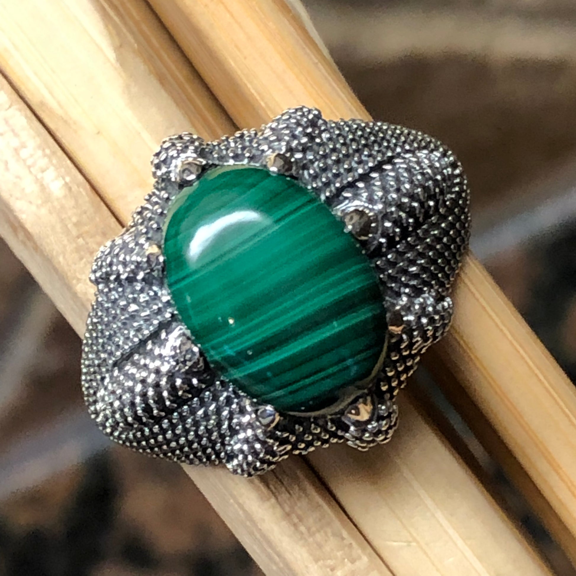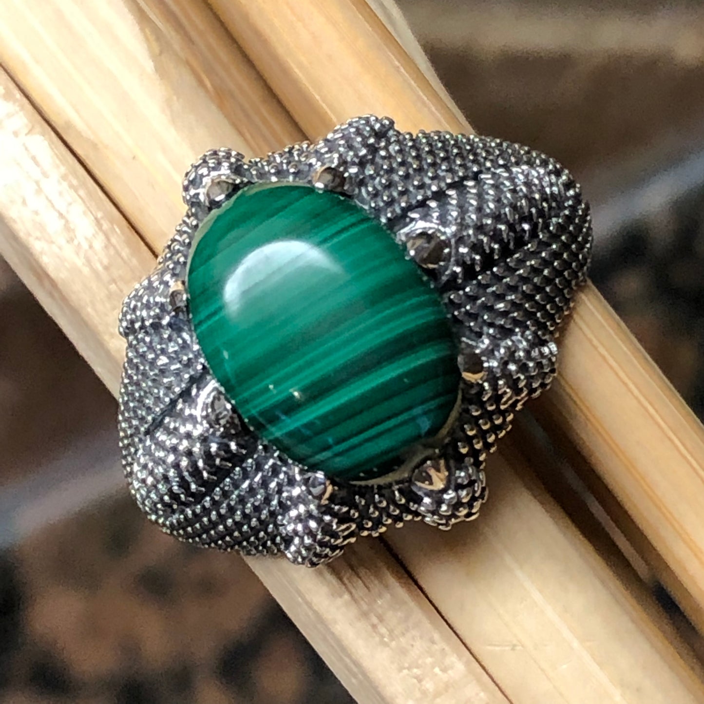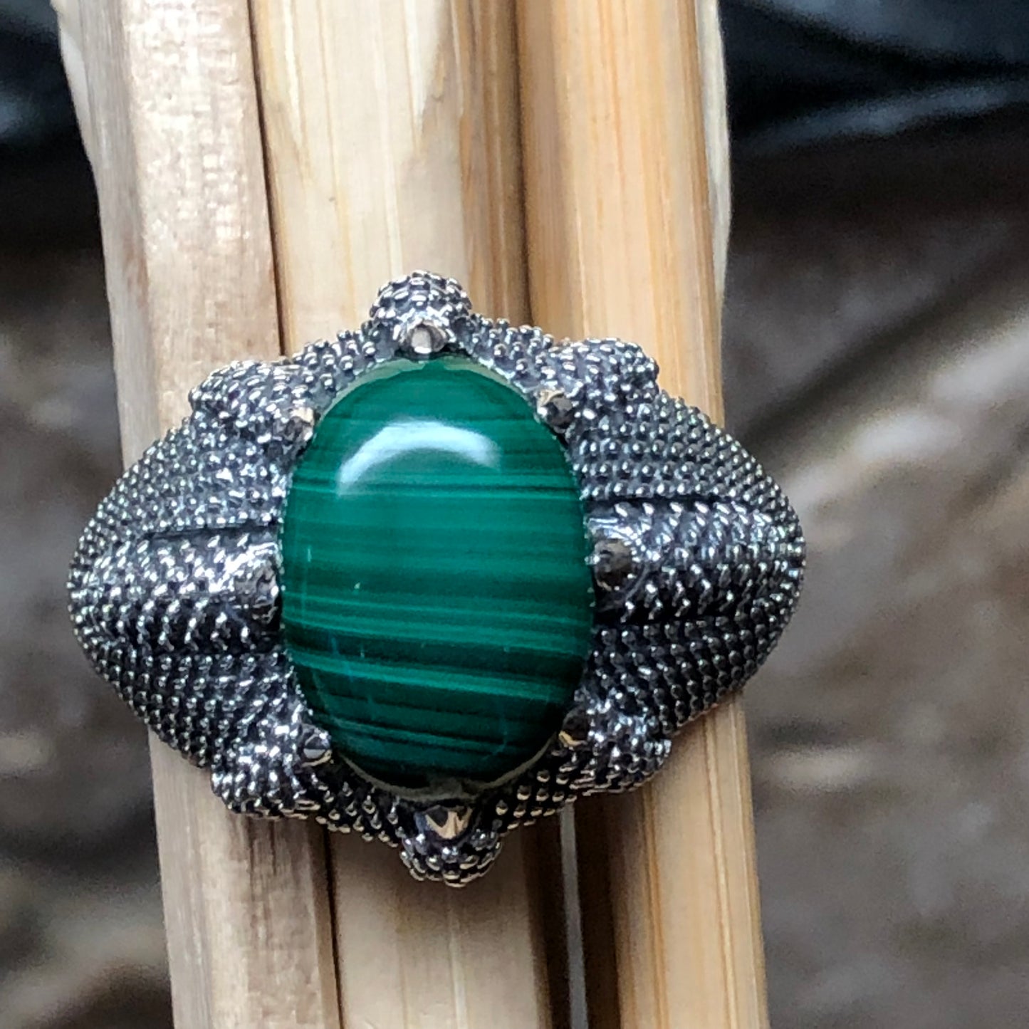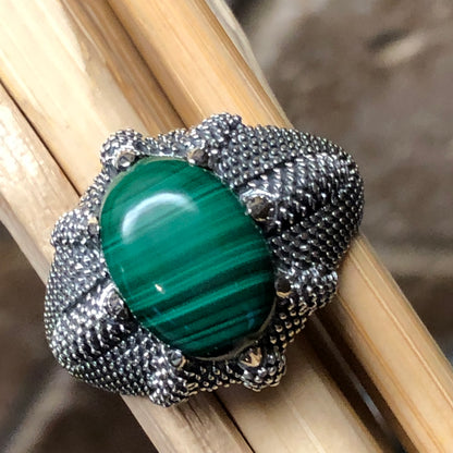 Natural Green Malachite 925 Solid Sterling Silver Men's Ring Size 8, 9, 10, 11, 12