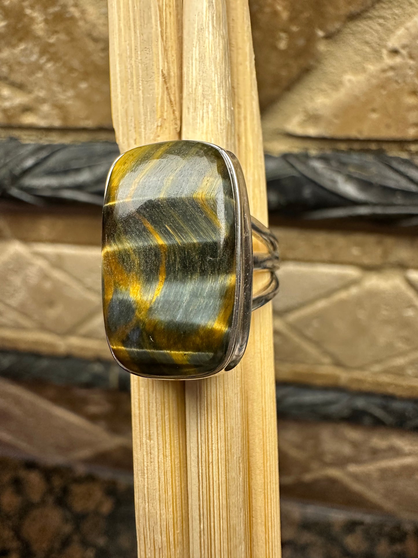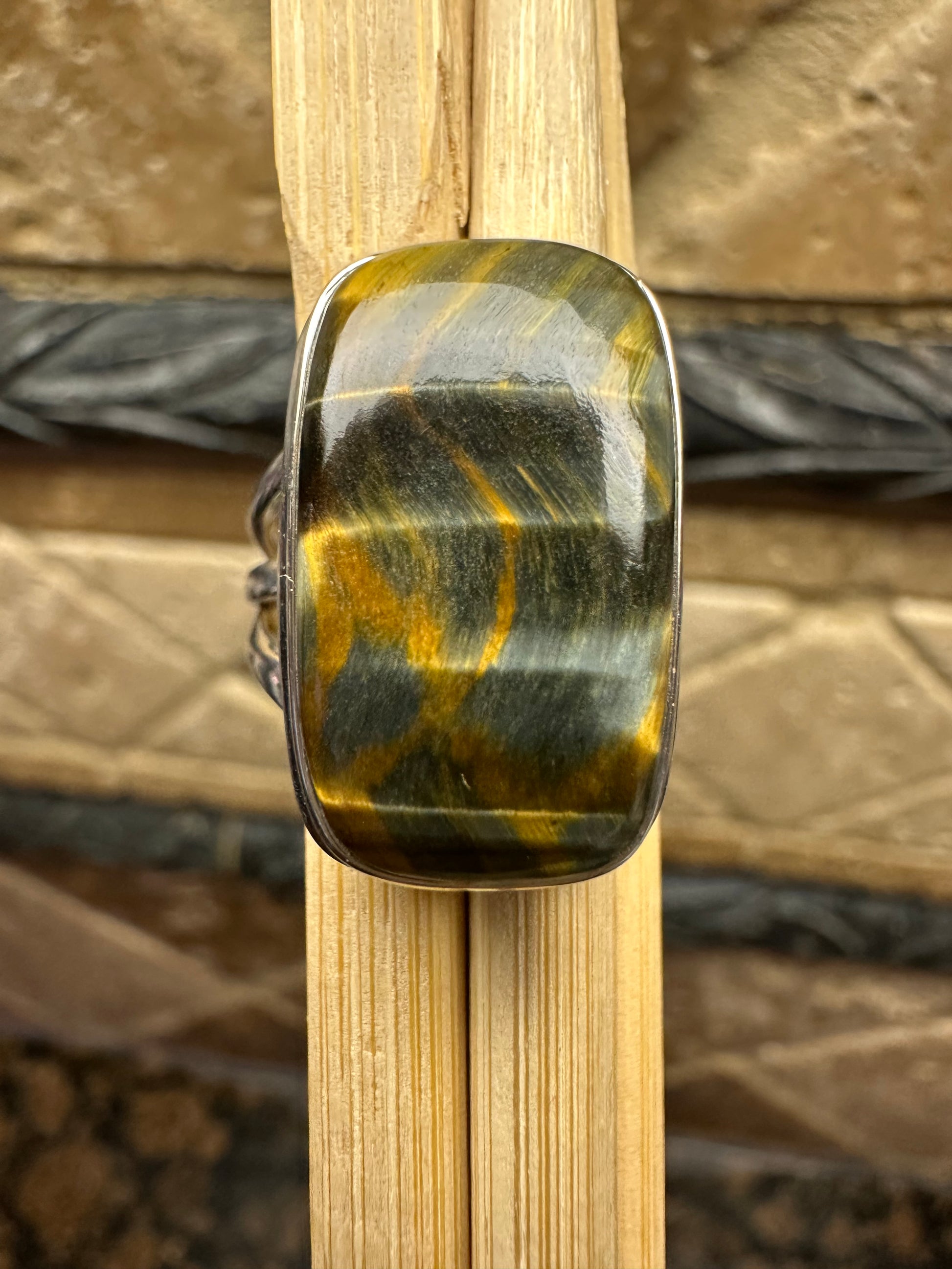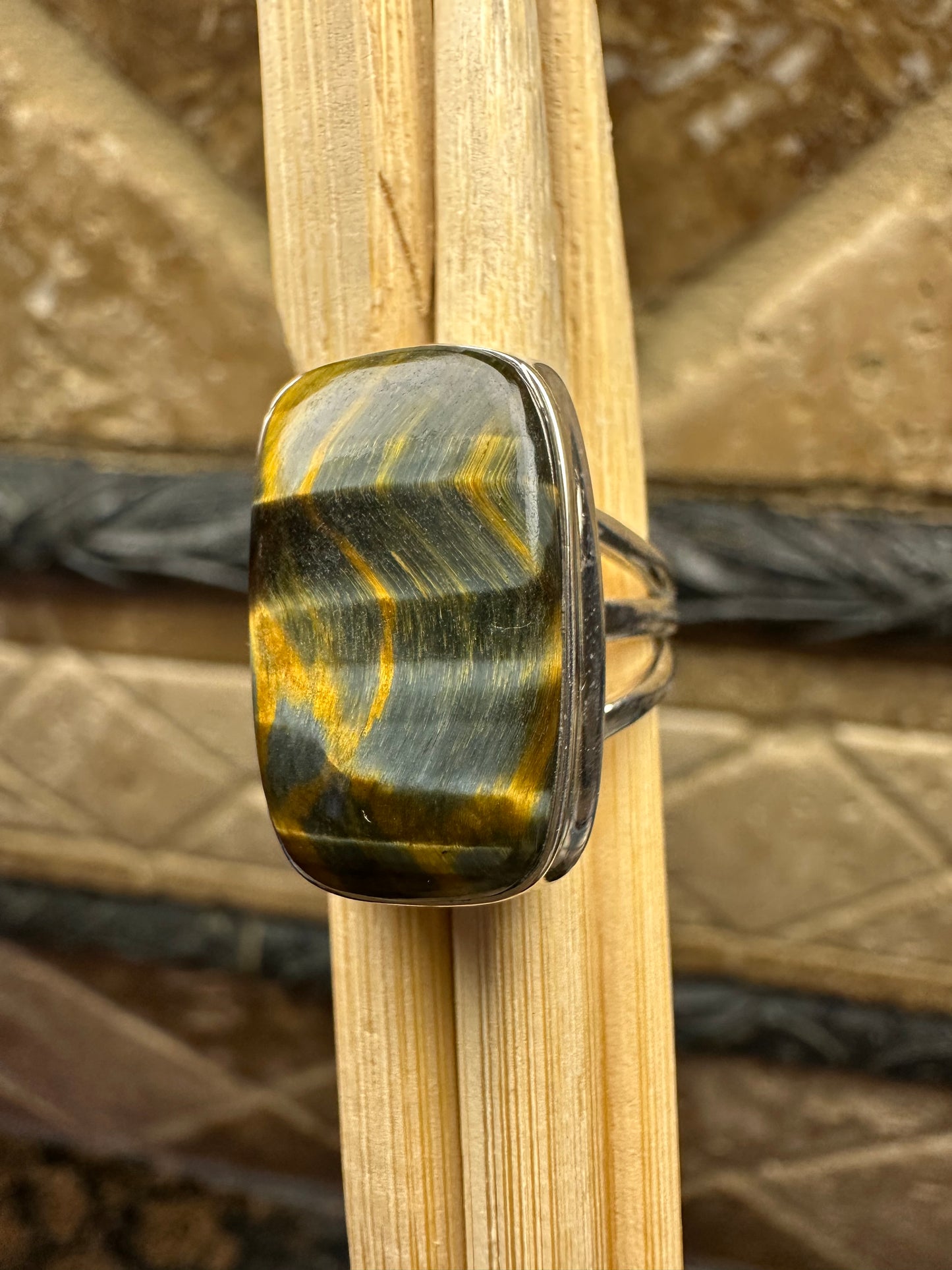 Natural Hawk's Eye 925 Solid Sterling Silver Ring Size 6