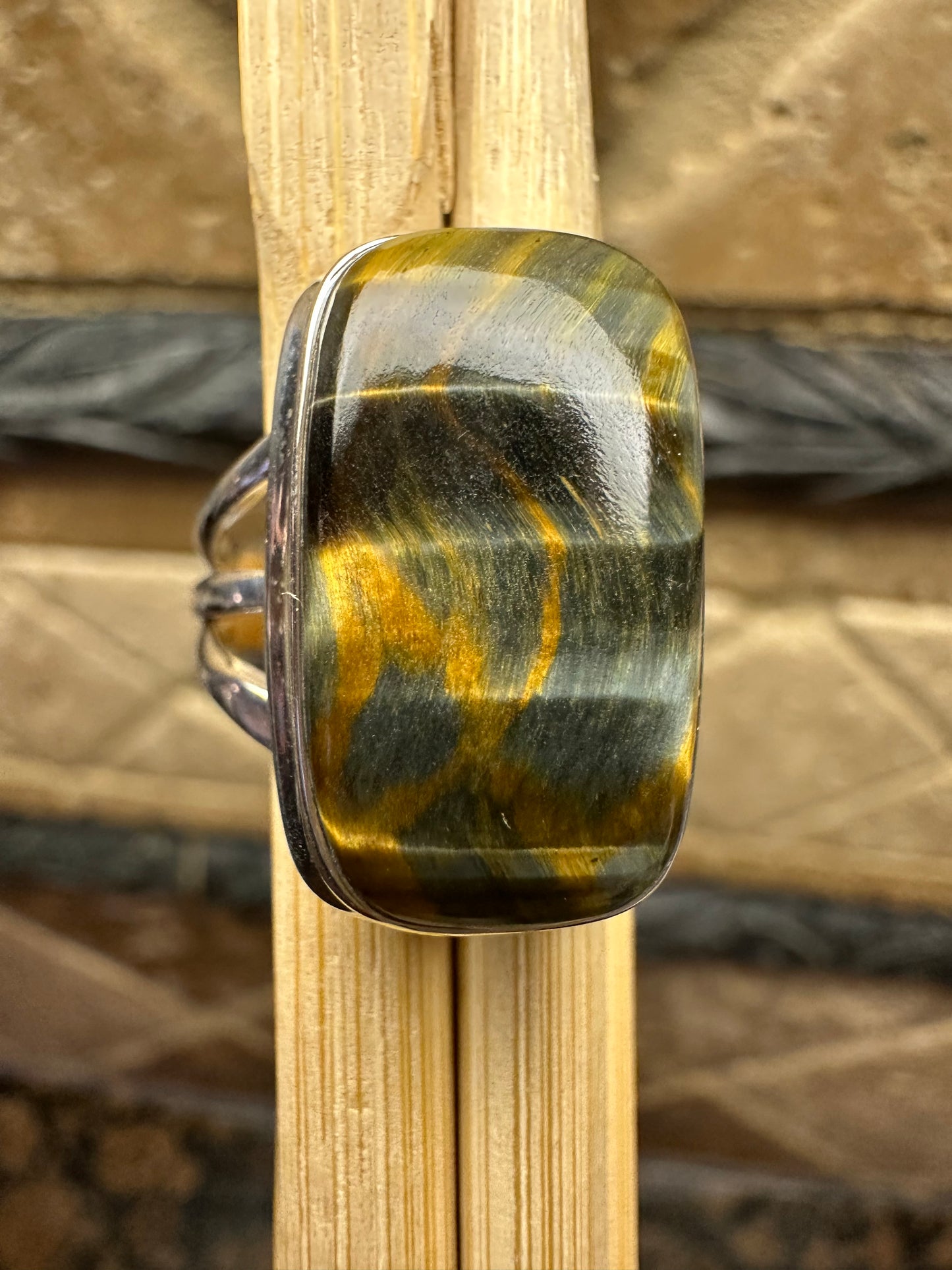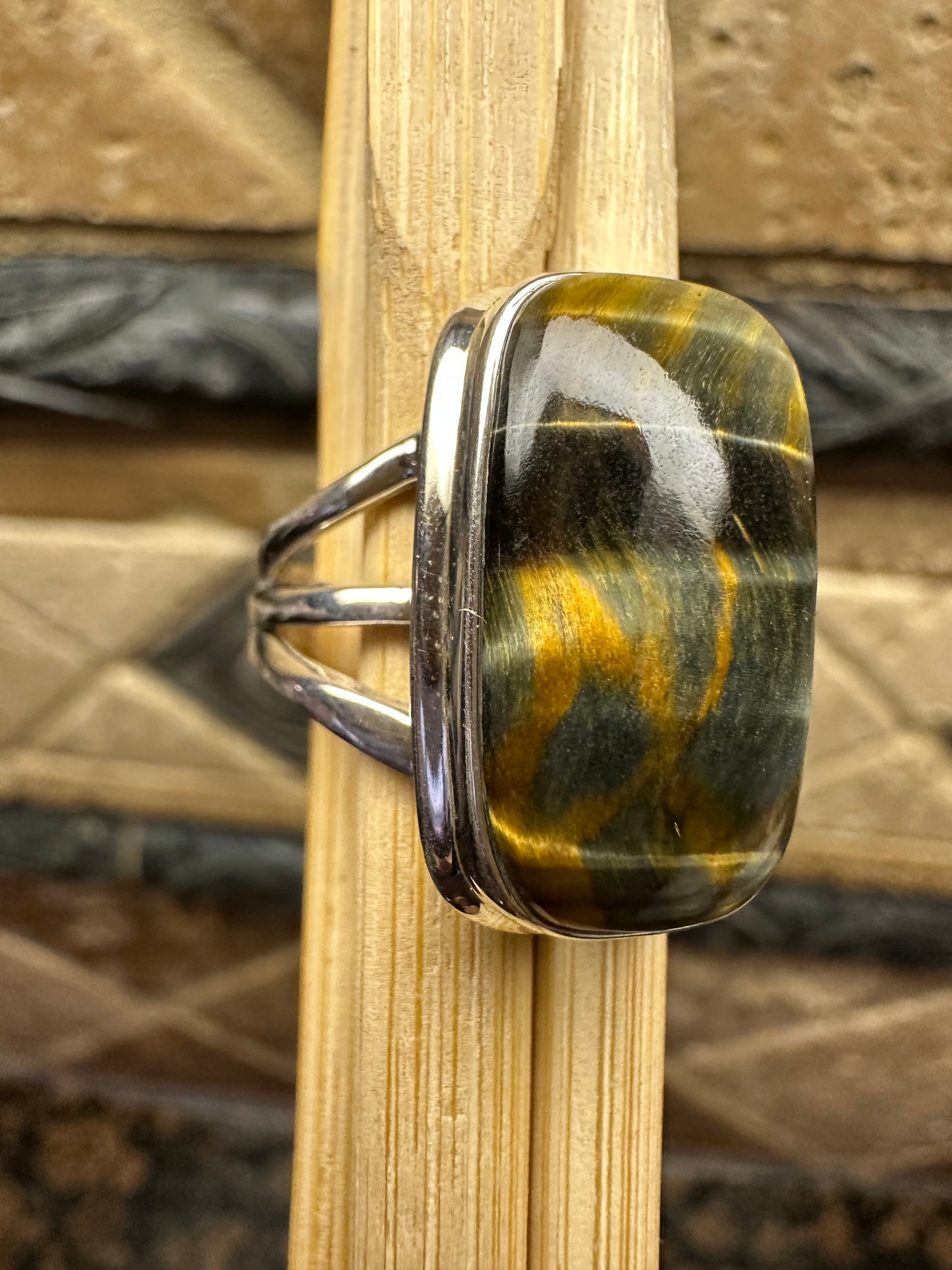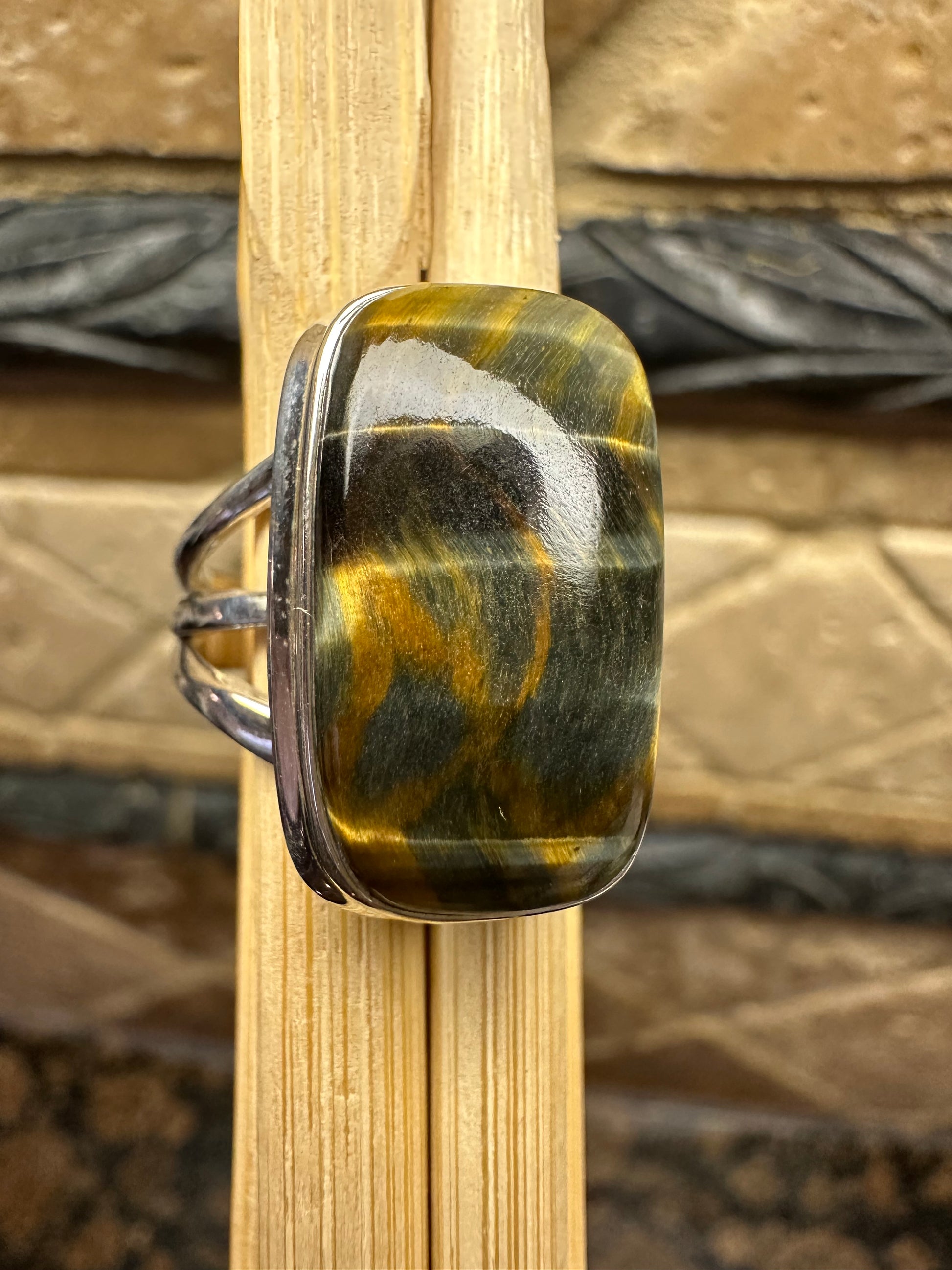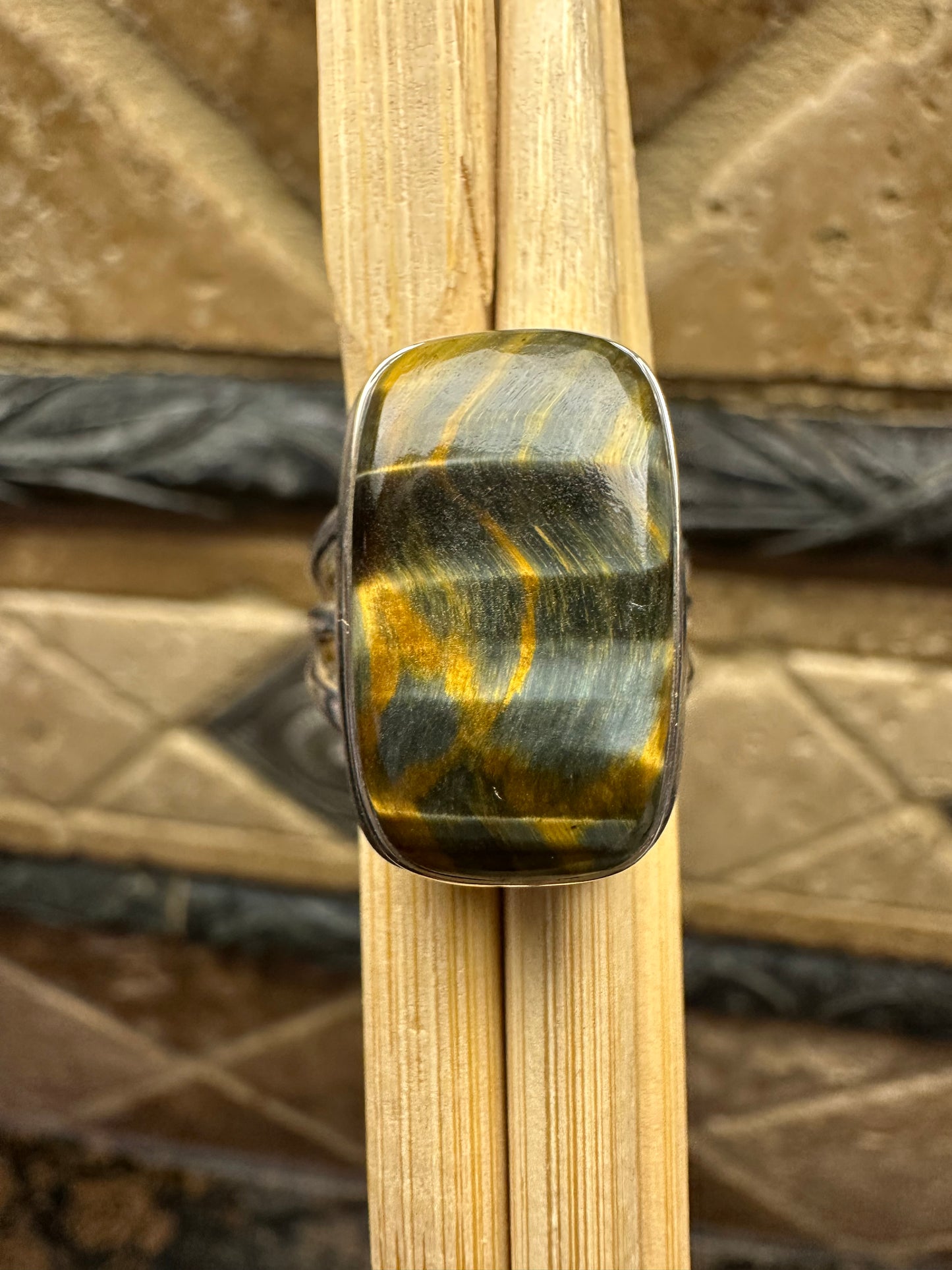 Natural Hawk's Eye 925 Solid Sterling Silver Ring Size 6