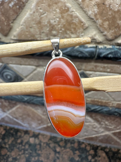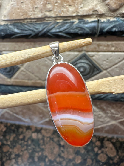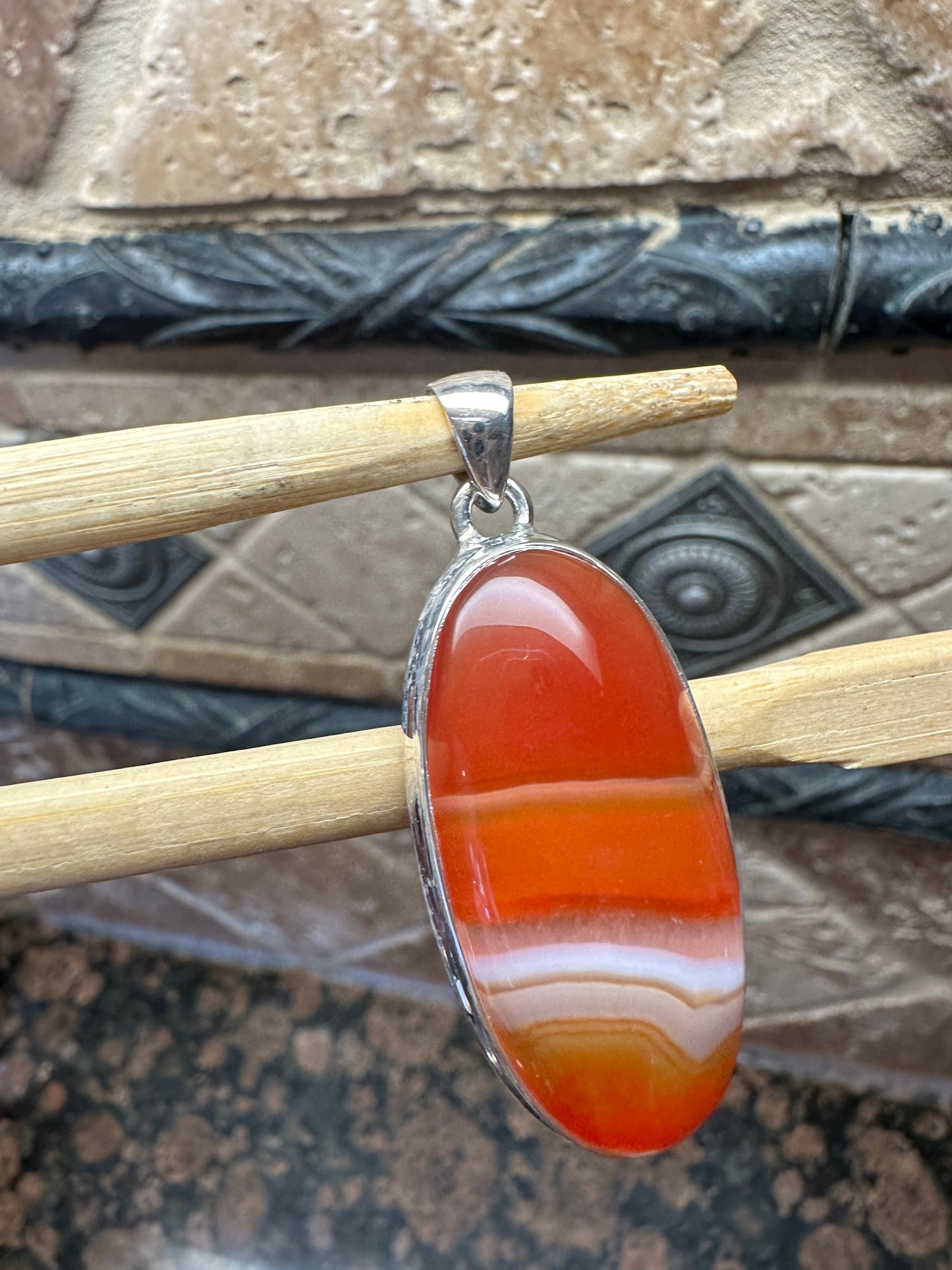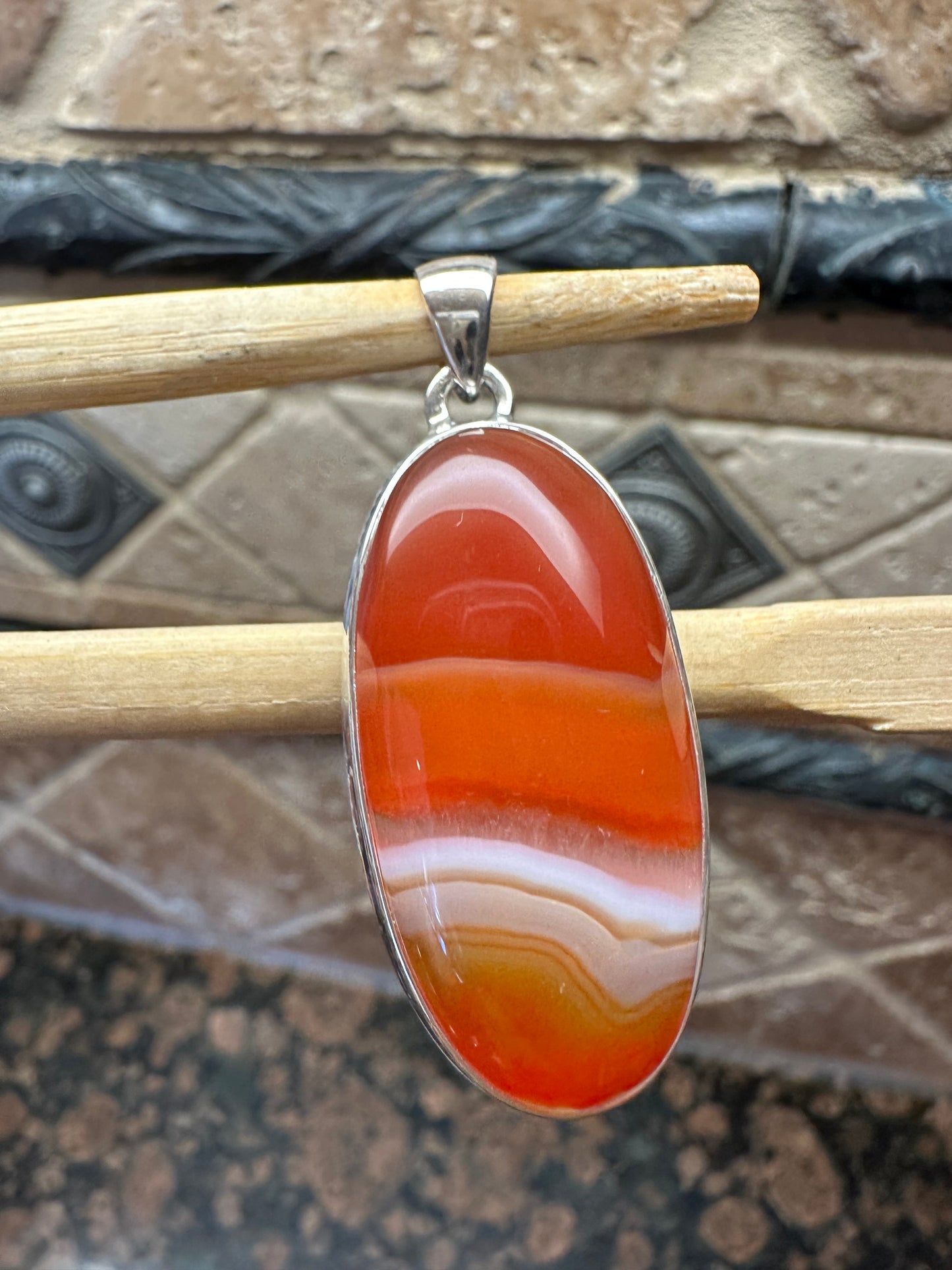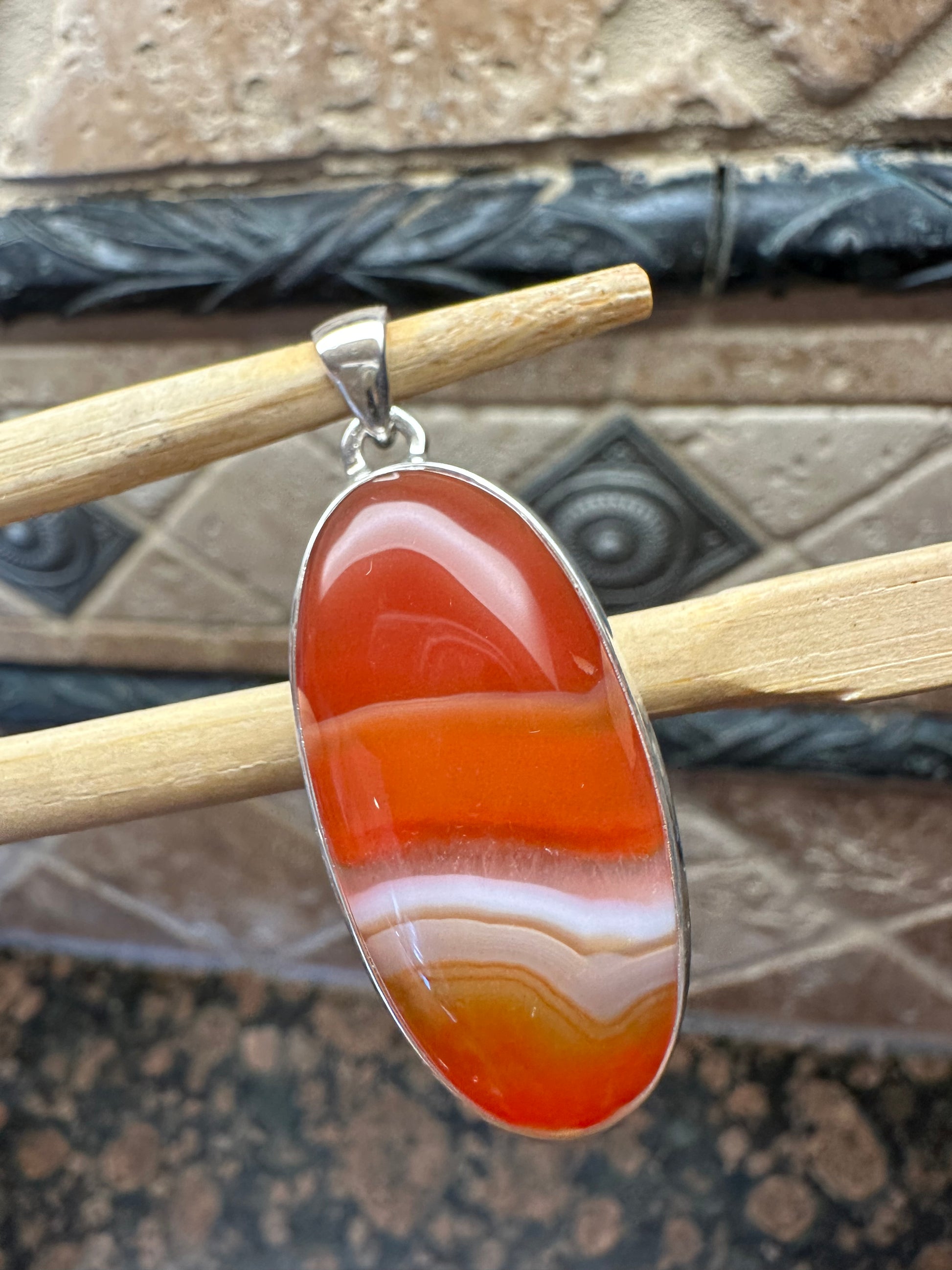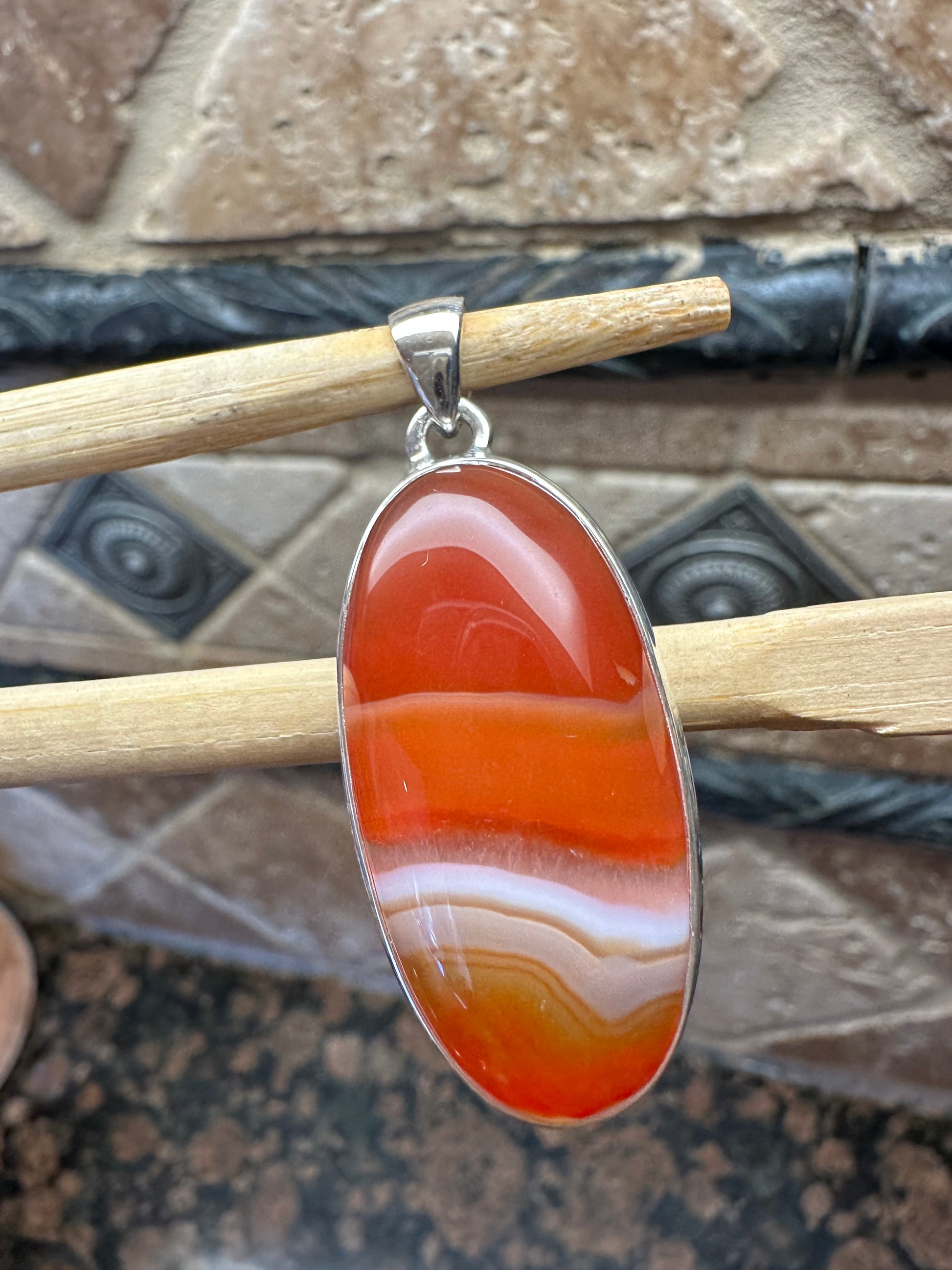 Natural Lake Superior Agate 925 Solid Sterling Silver Pendant 45mm