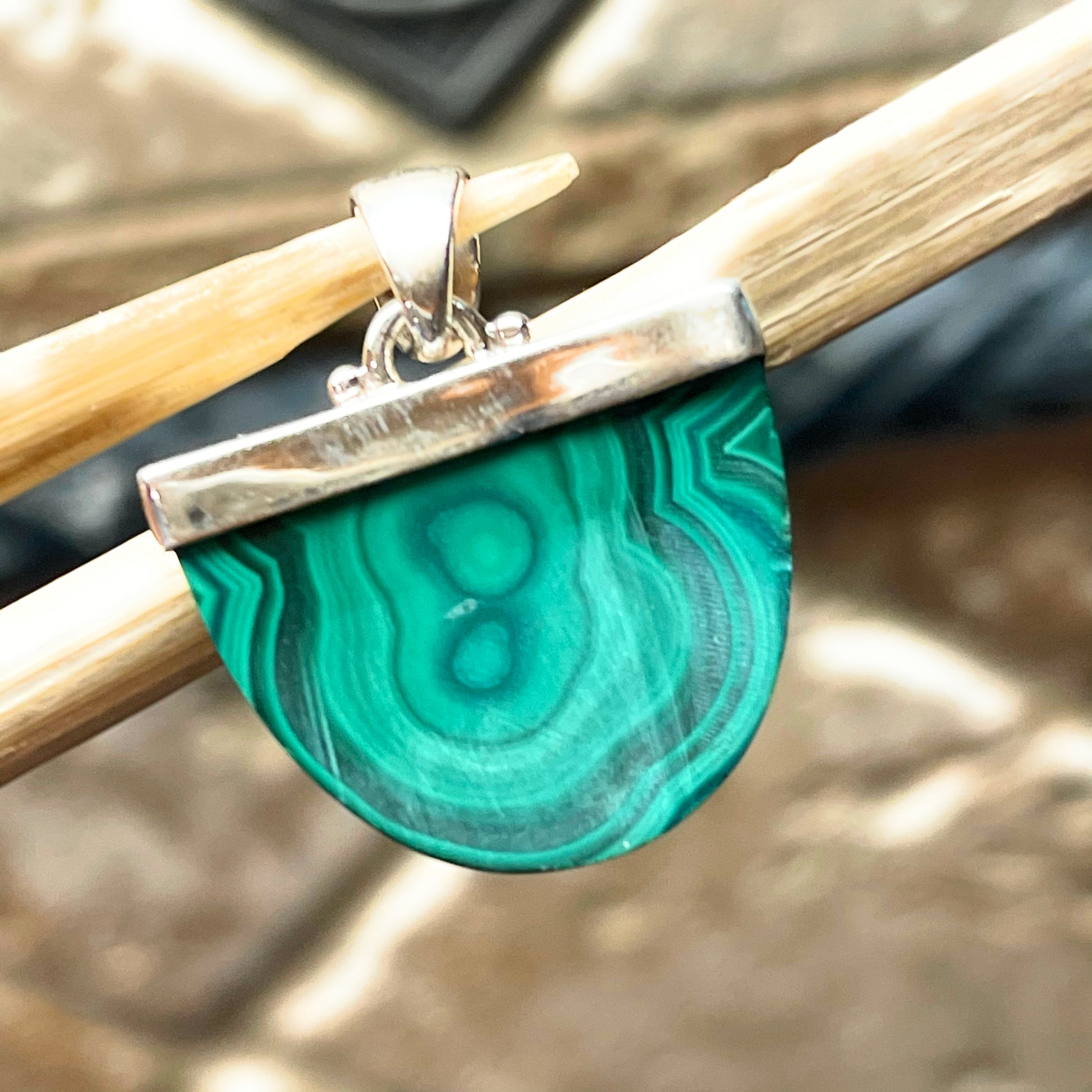 Natural Malachite 925 Solid Sterling Silver Pendant 27mm