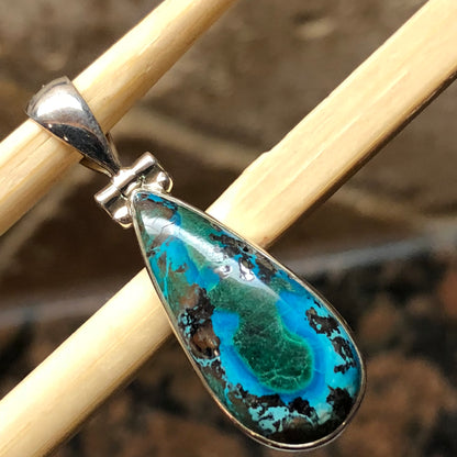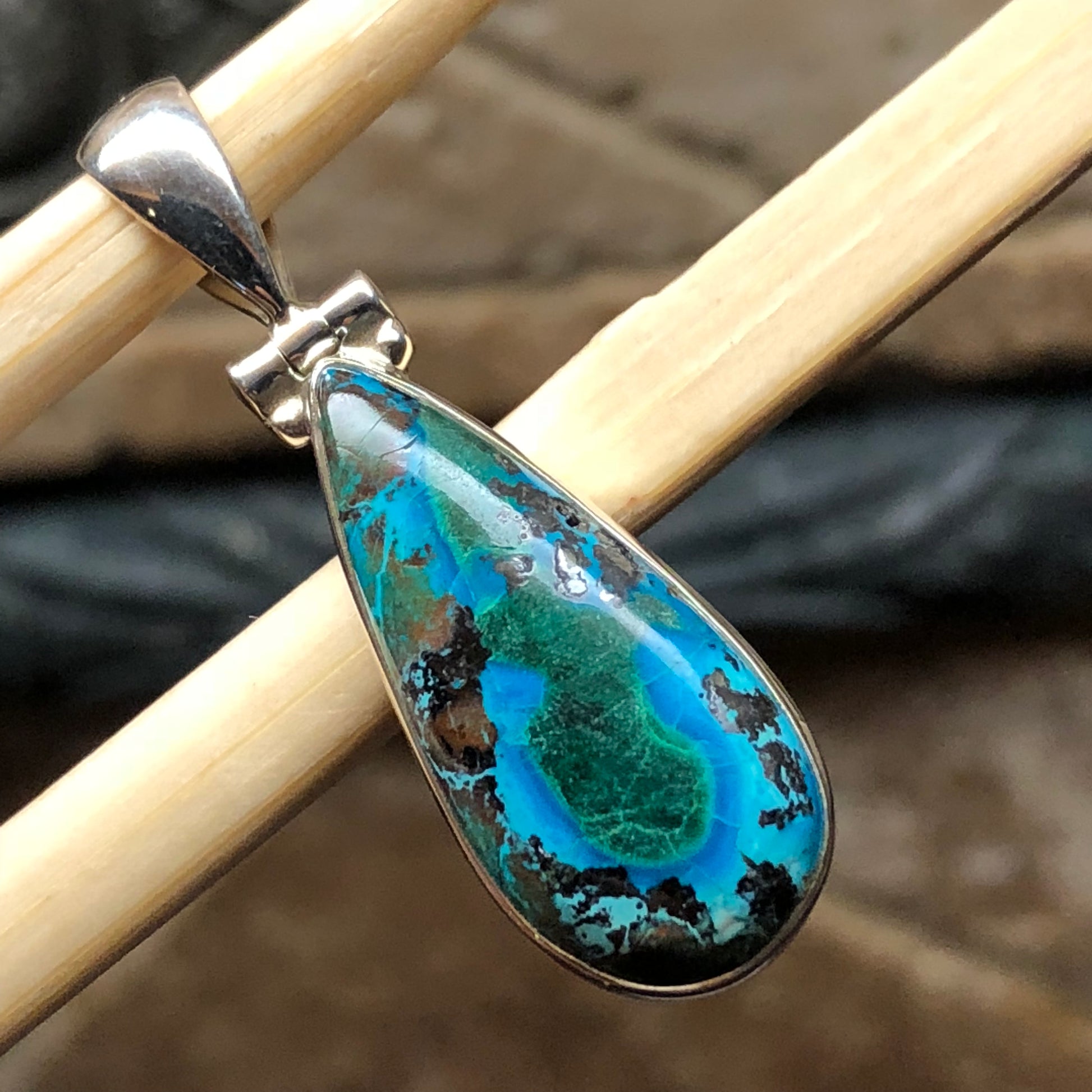 Natural Malachite in Azurite 925 Solid Sterling Silver Pendant 35mm