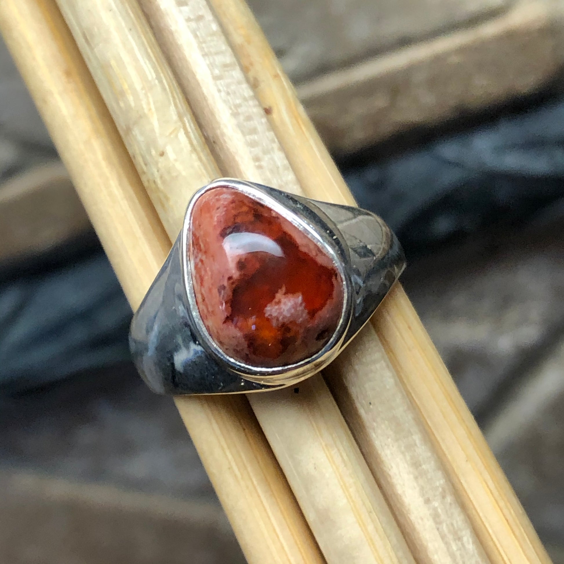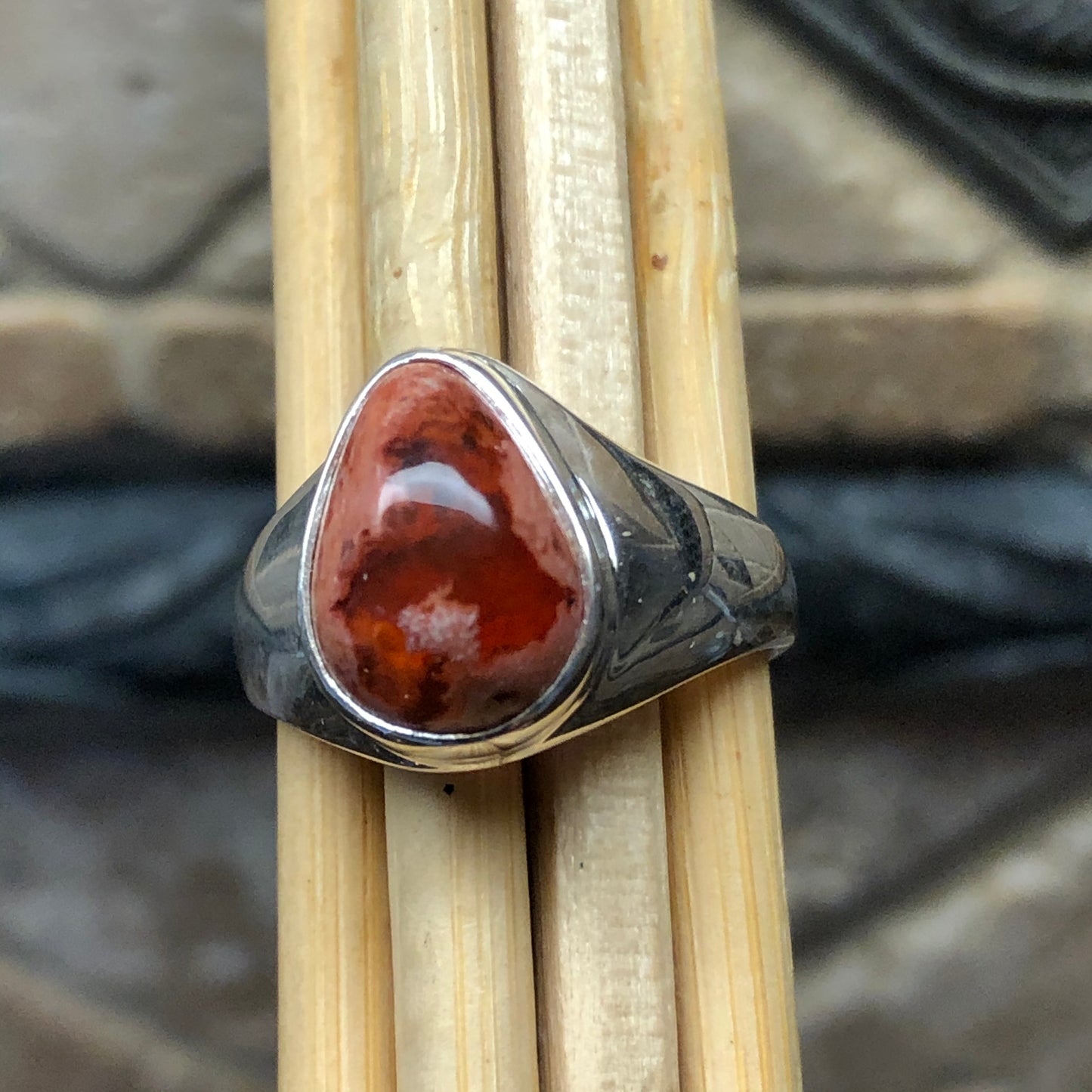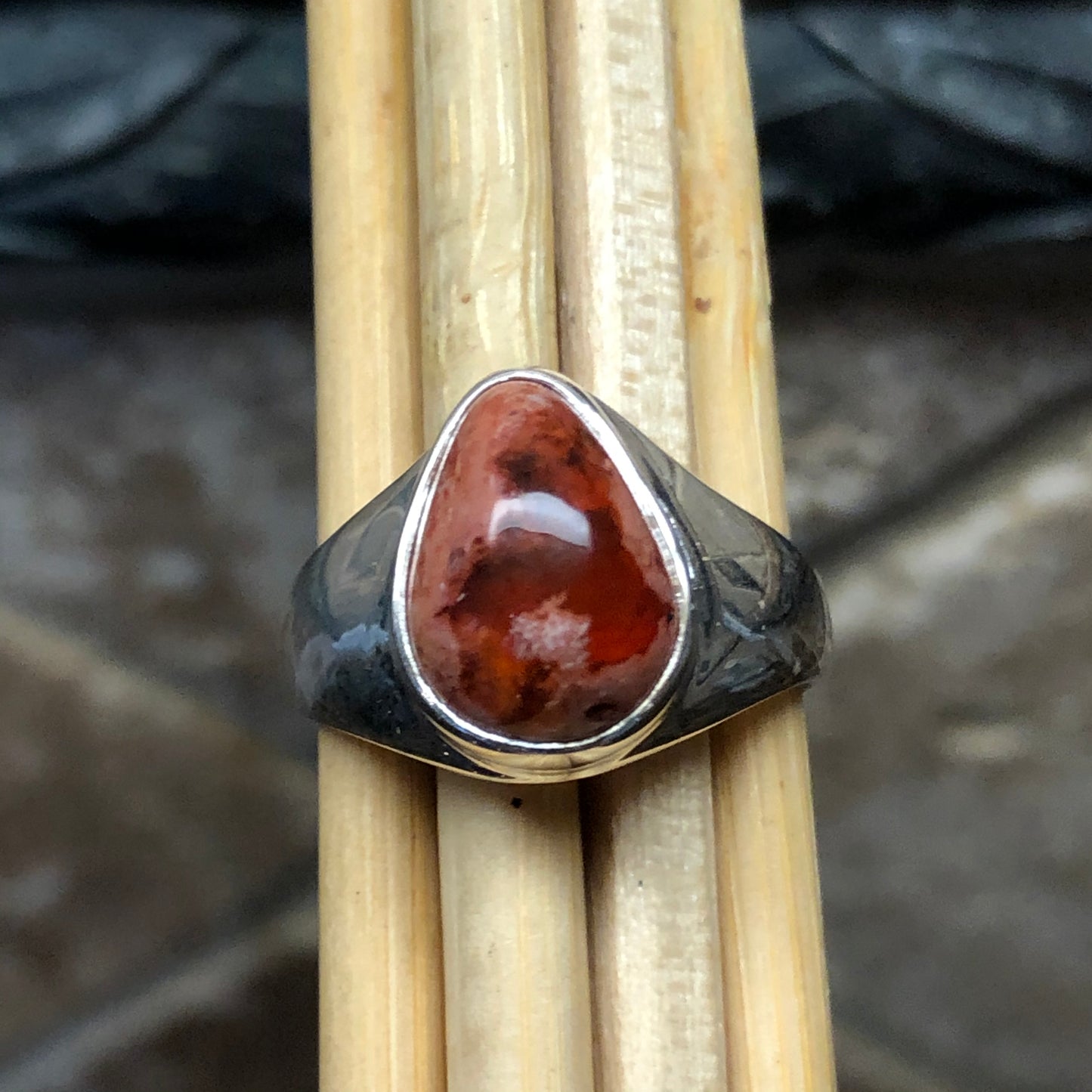 Natural Mexican Fire Opal 925 Solid Sterling Silver Men's Ring Size 8.5