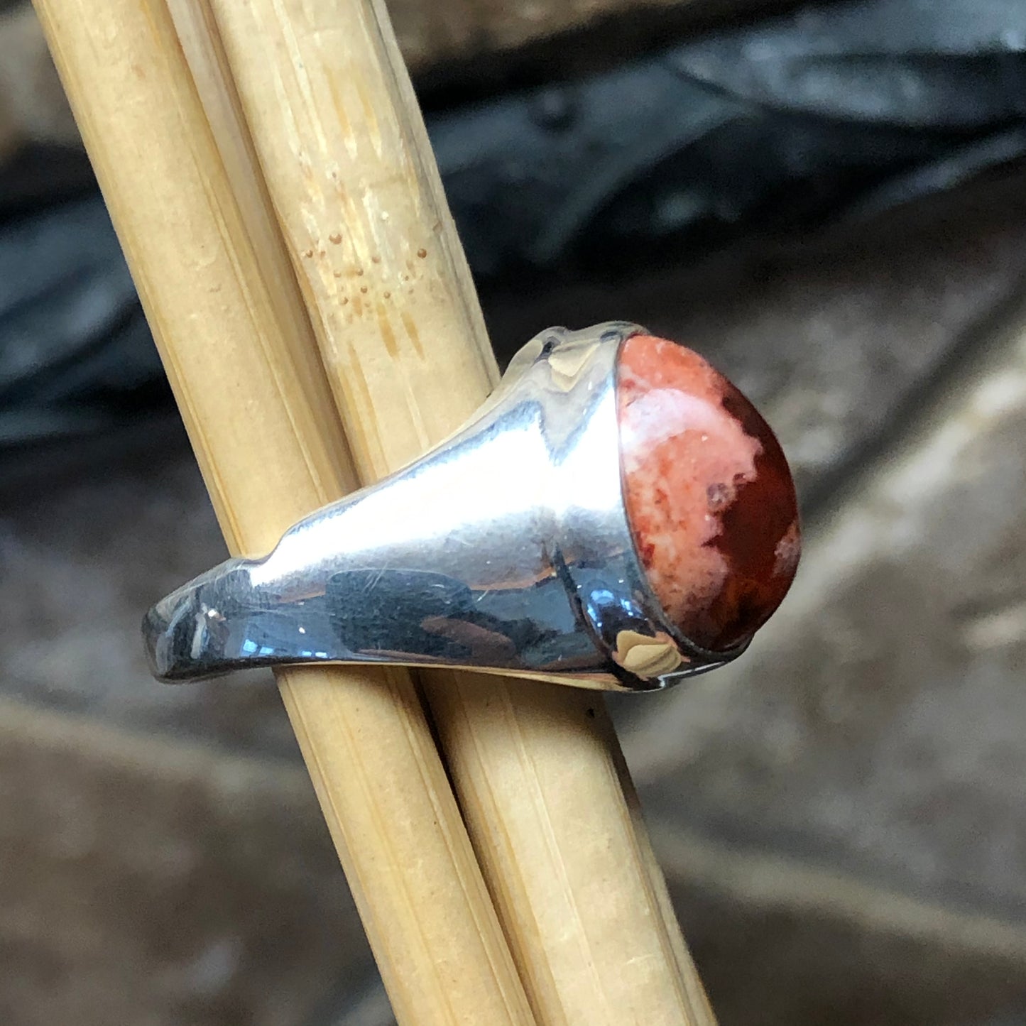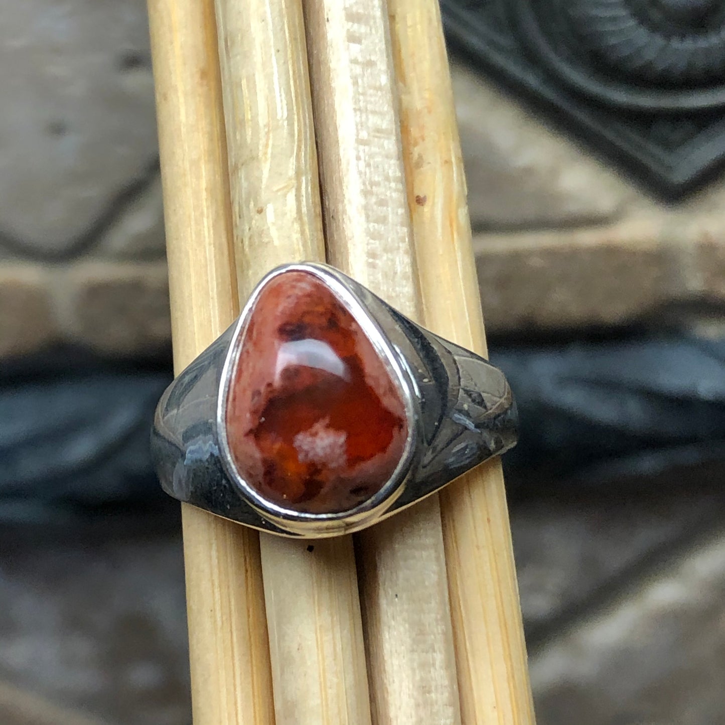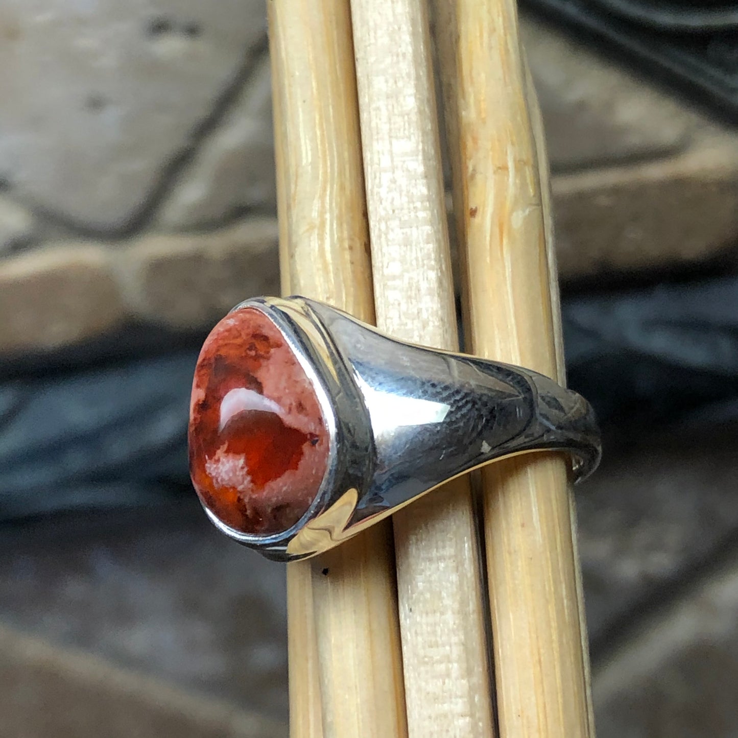 Natural Mexican Fire Opal 925 Solid Sterling Silver Men's Ring Size 8.5