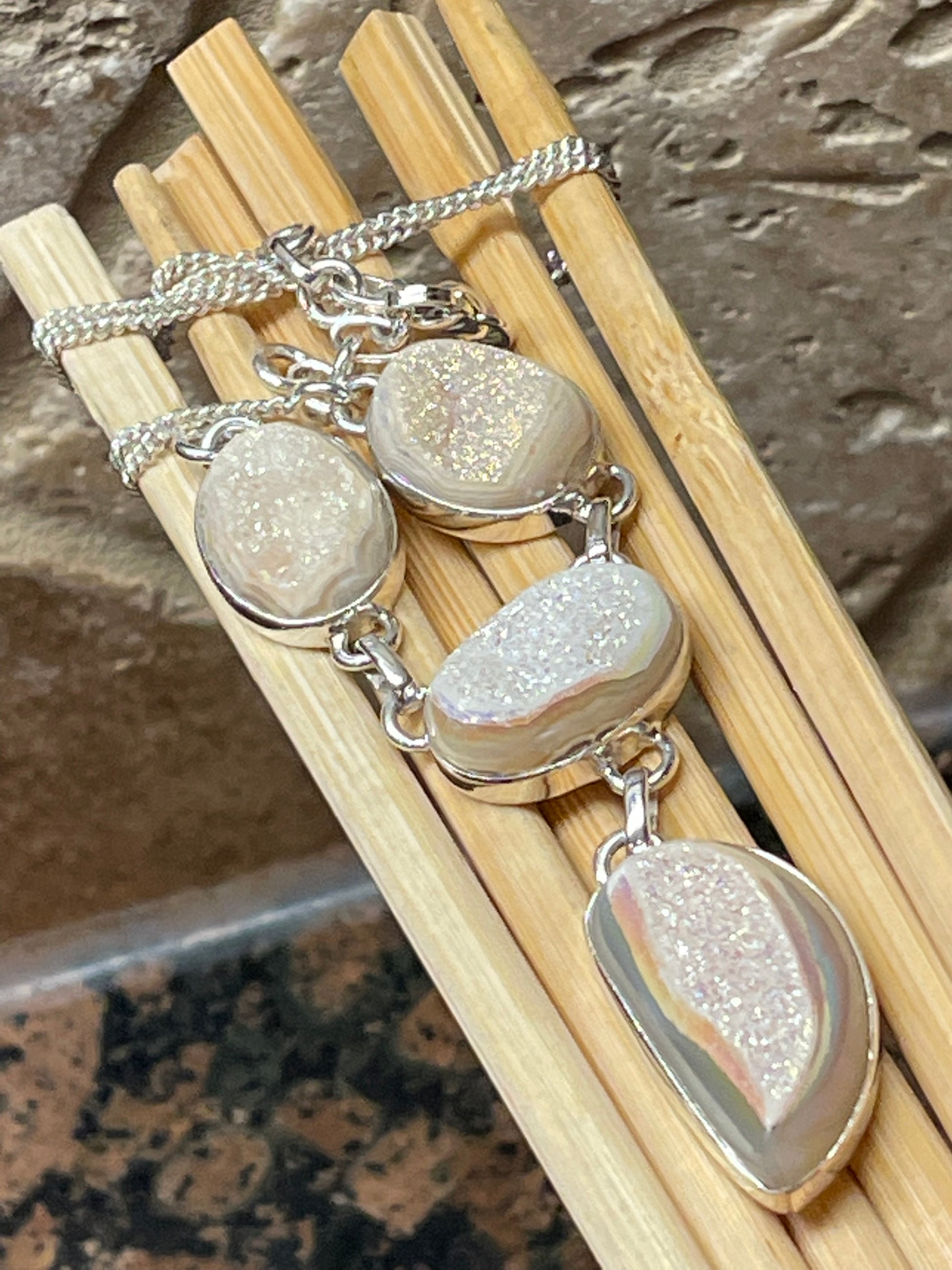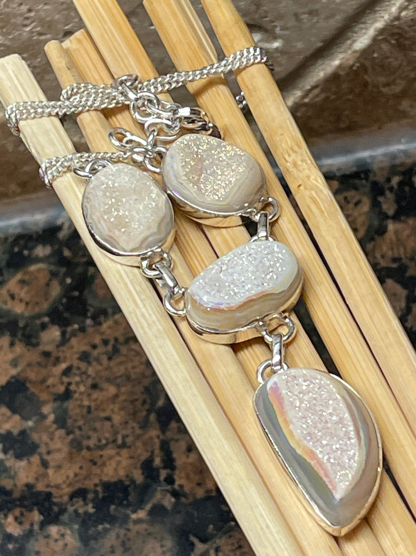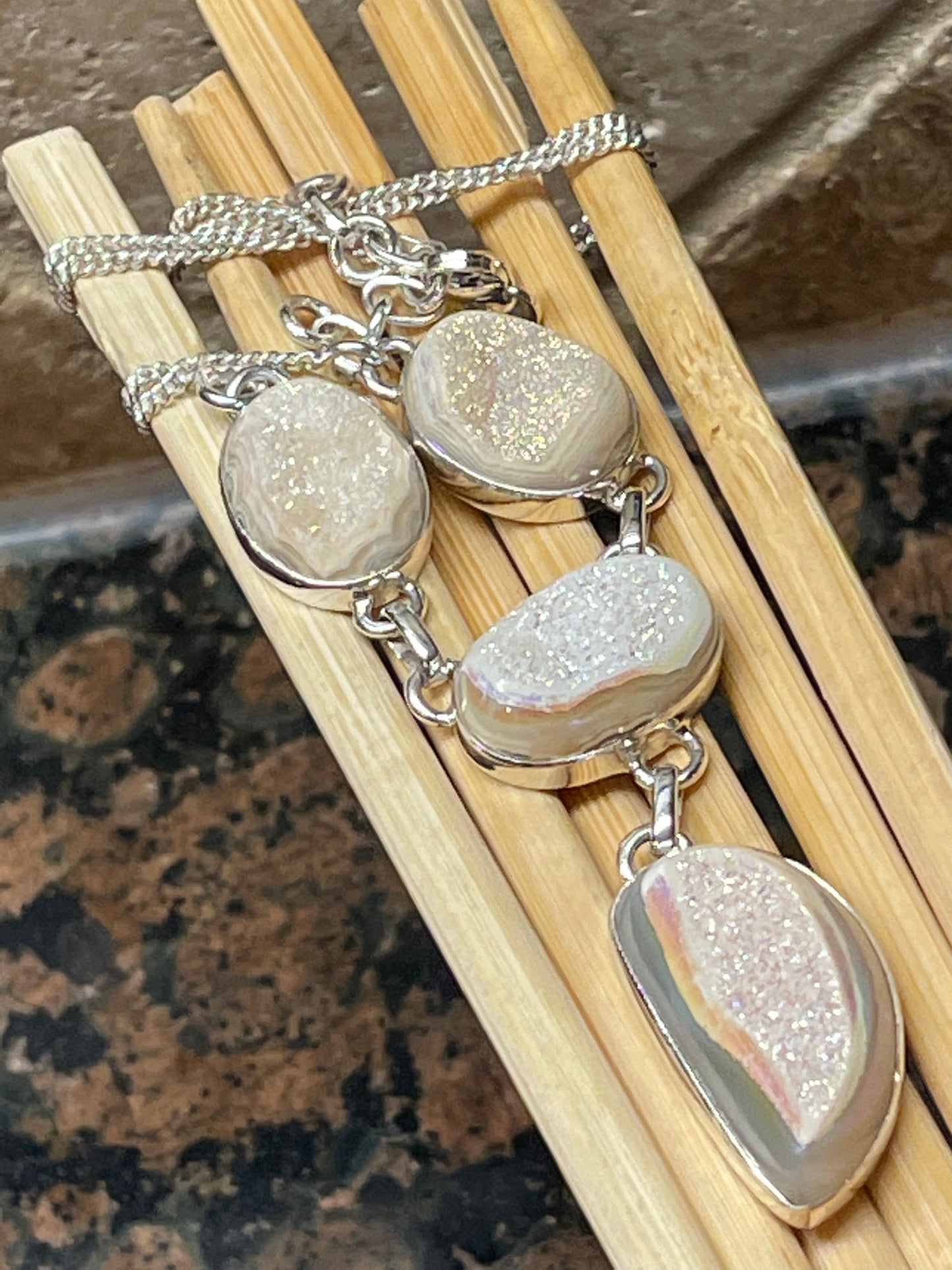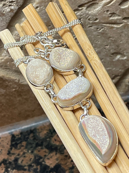 Natural Pearl Window Druzy 925 Solid Sterling Silver Cluster Necklace 18"