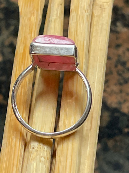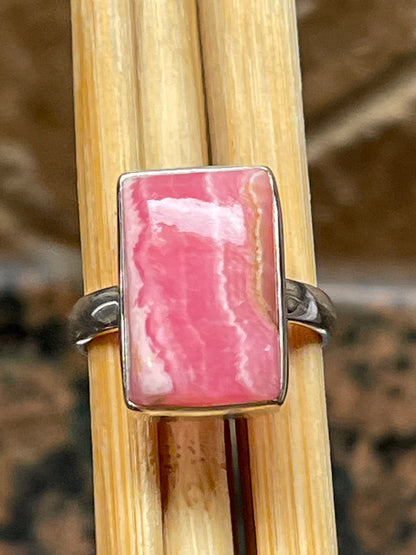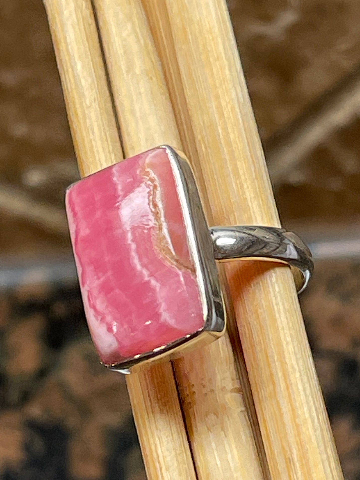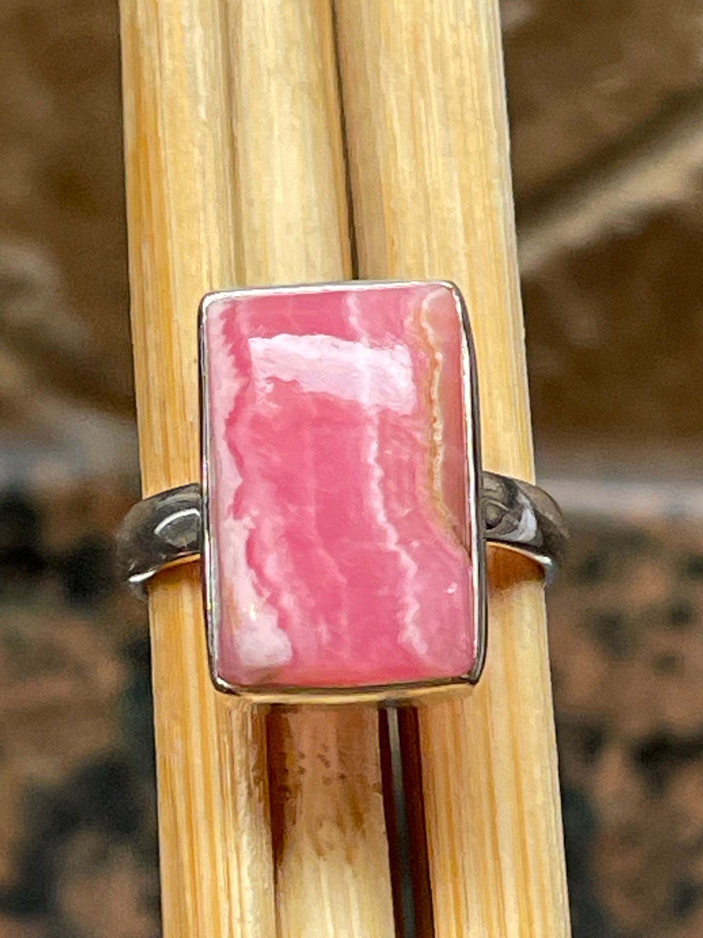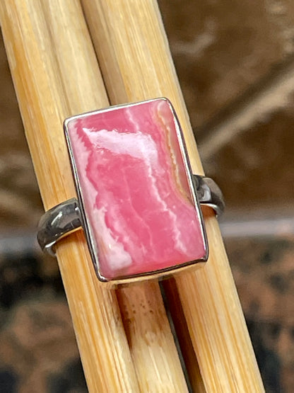 Natural Pink Rhodocrosite 925 Solid Sterling Silver Ring Size 9.5