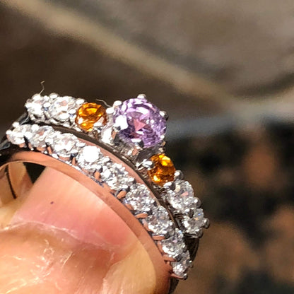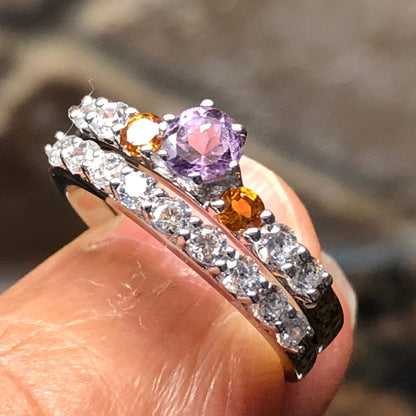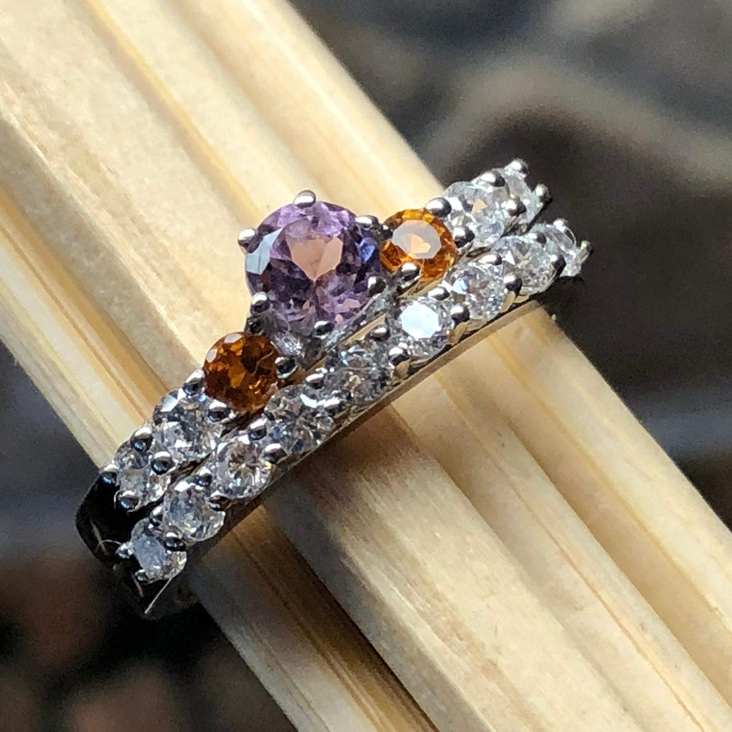 Natural Purple Amethyst, Citrine 925 Solid Sterling Silver Engagement Ring Size 6, 7, 8, 9