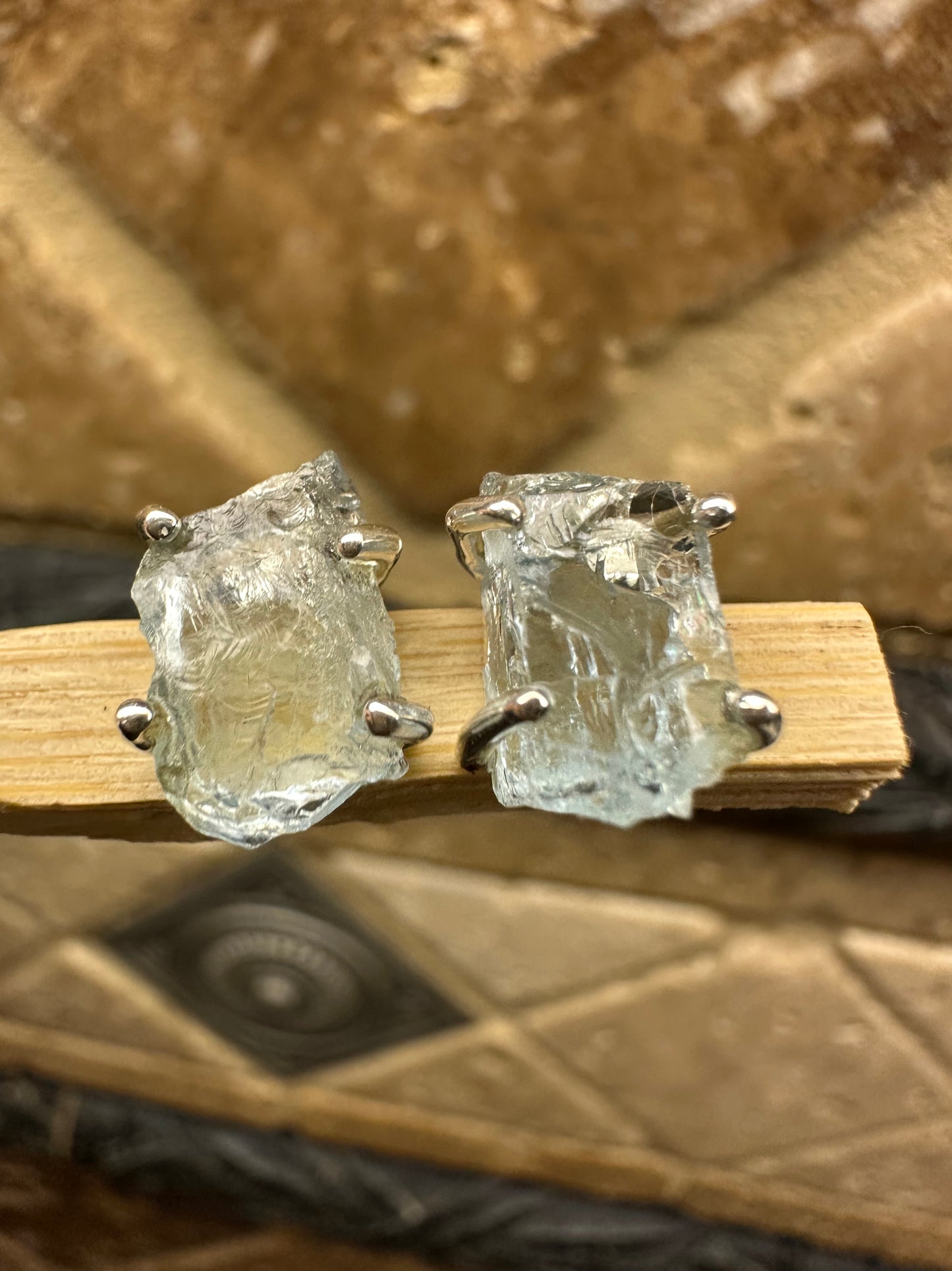 Natural Raw Blue Aquamarine 925 Solid Sterling Silver Earrings 9mm