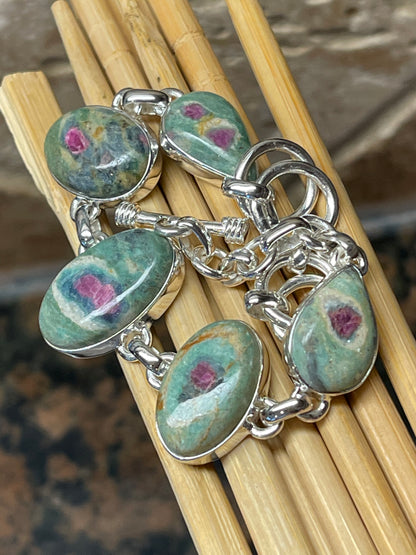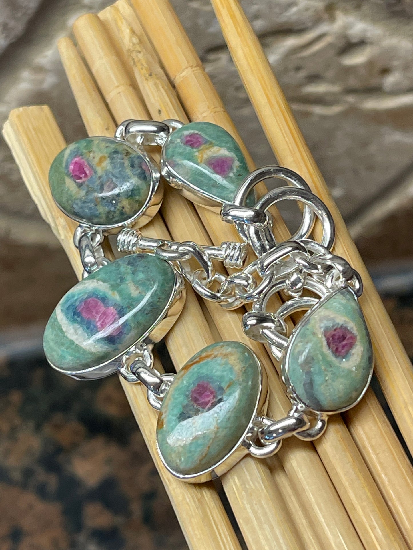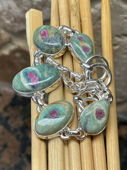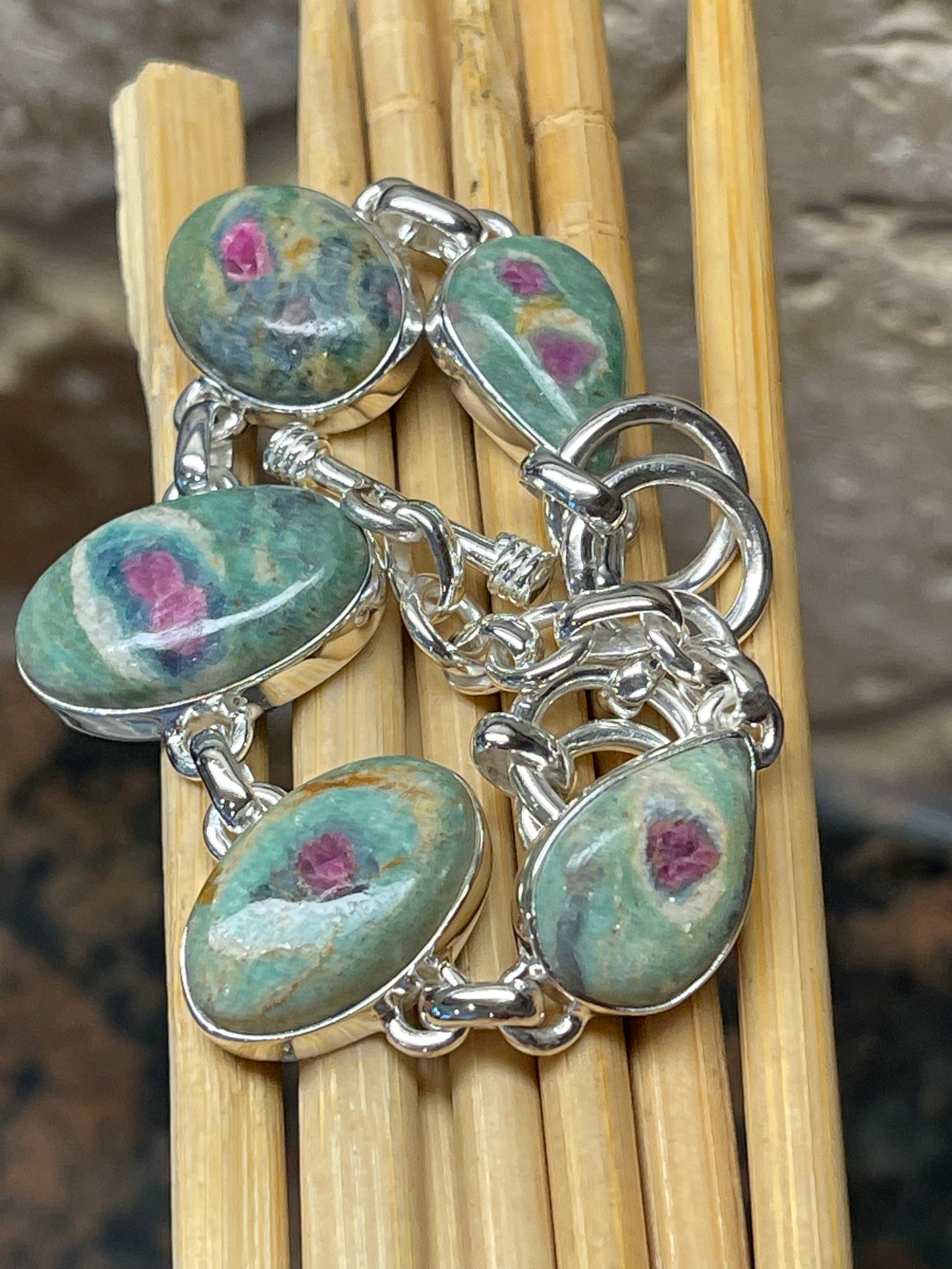 Natural Ruby in Fuchsite 925 Solid Sterling Silver Bracelets 7"