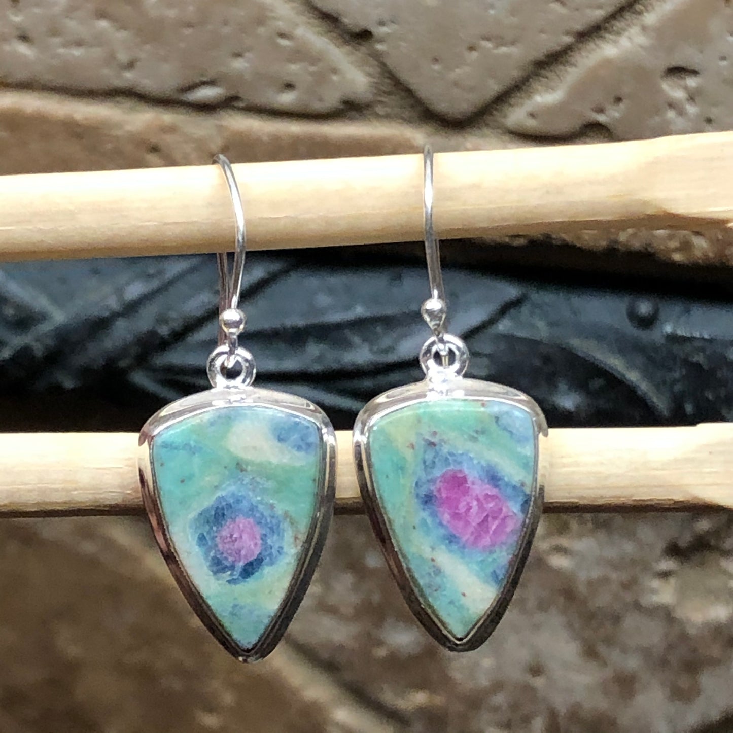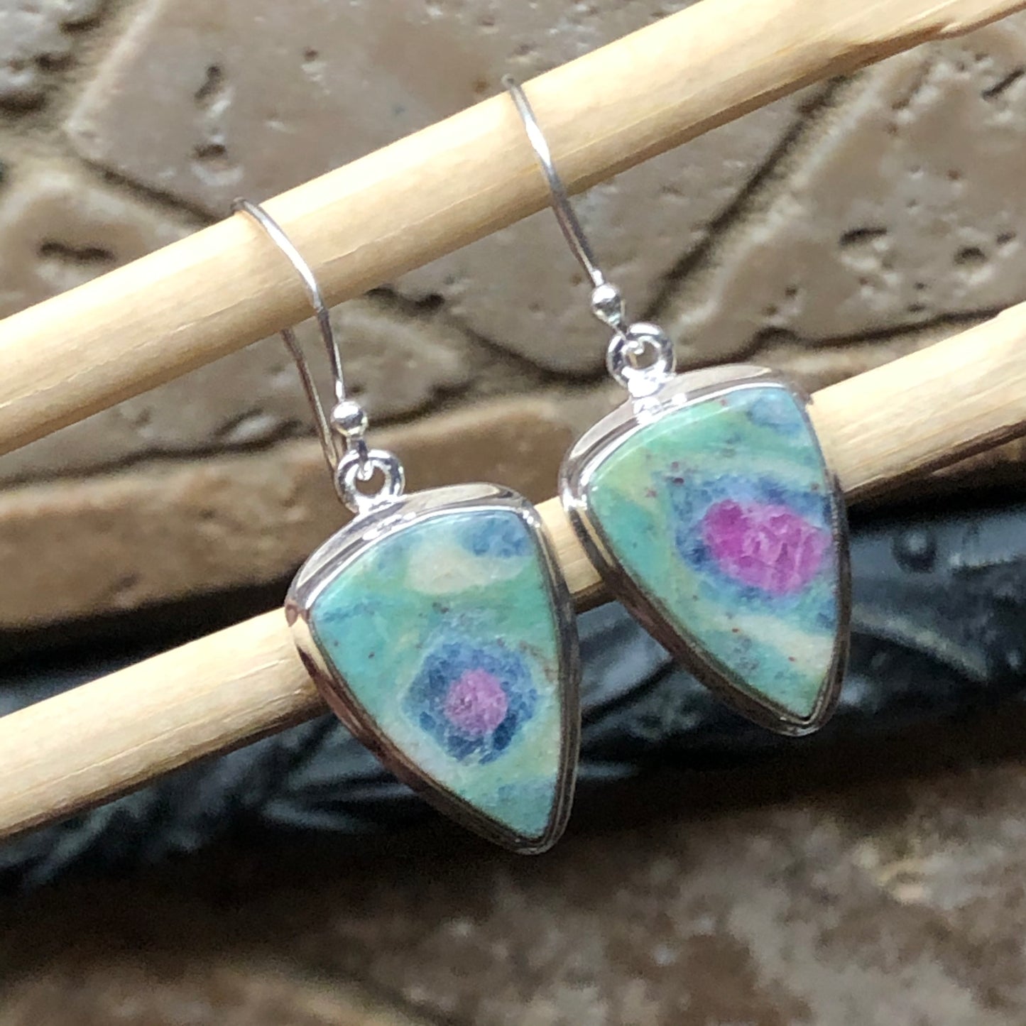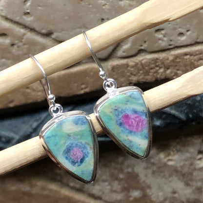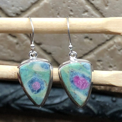 Natural Ruby in Fuchsite 925 Solid Sterling Silver Earrings 30mm