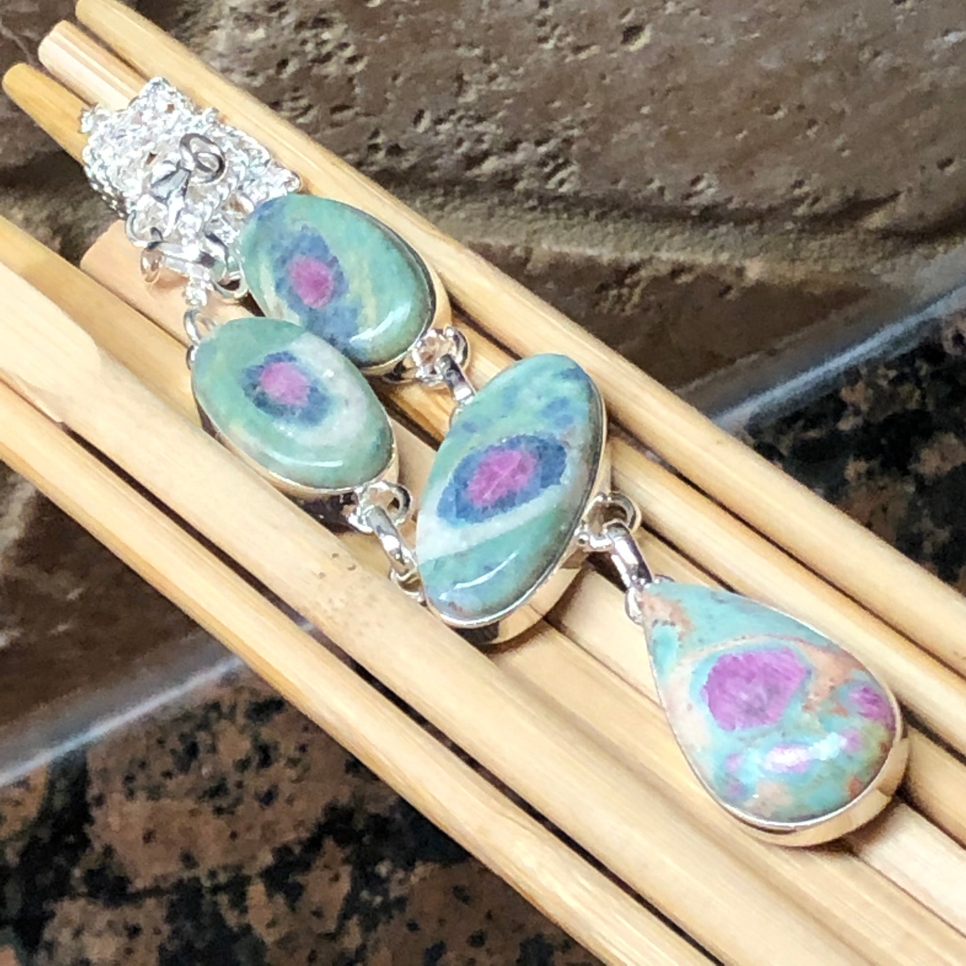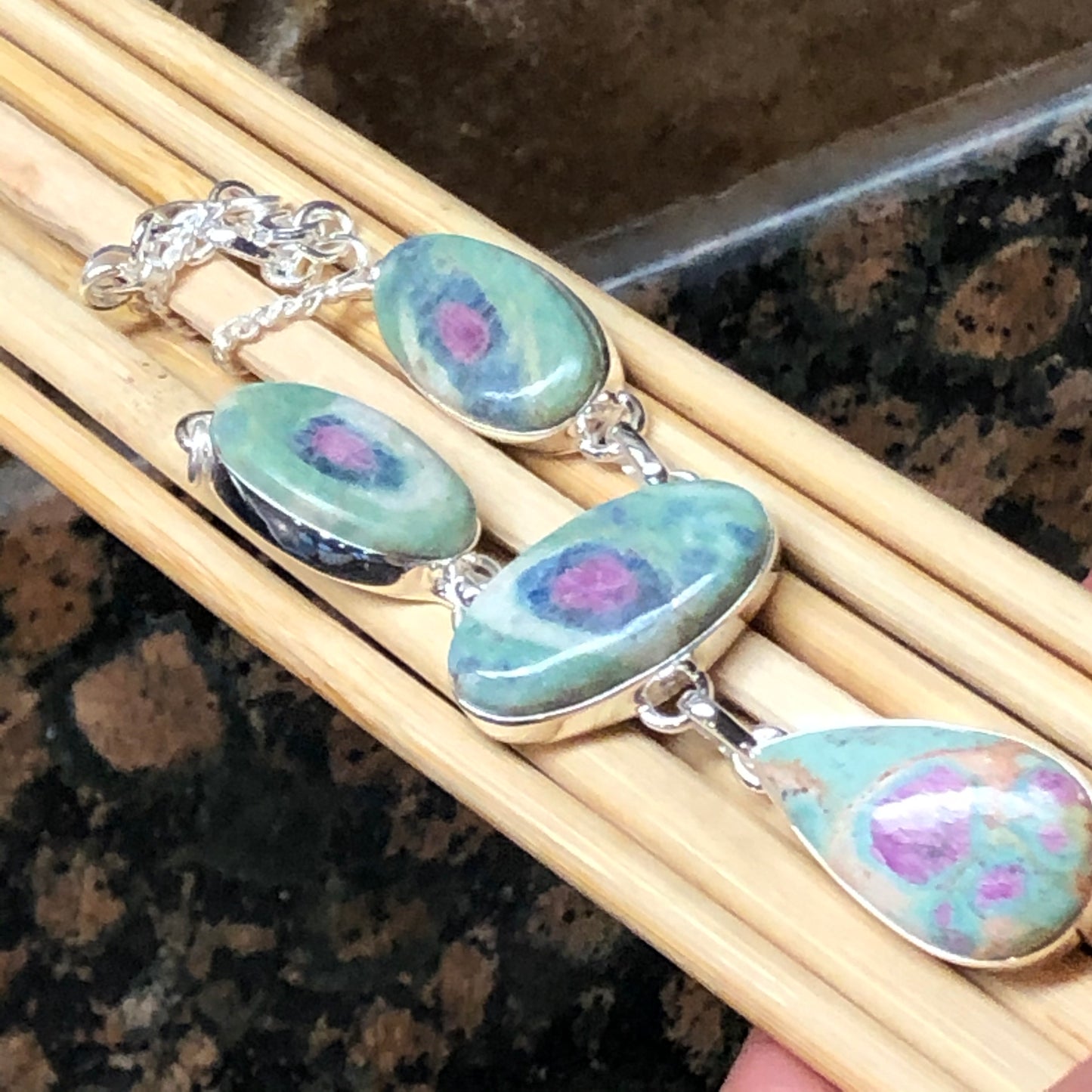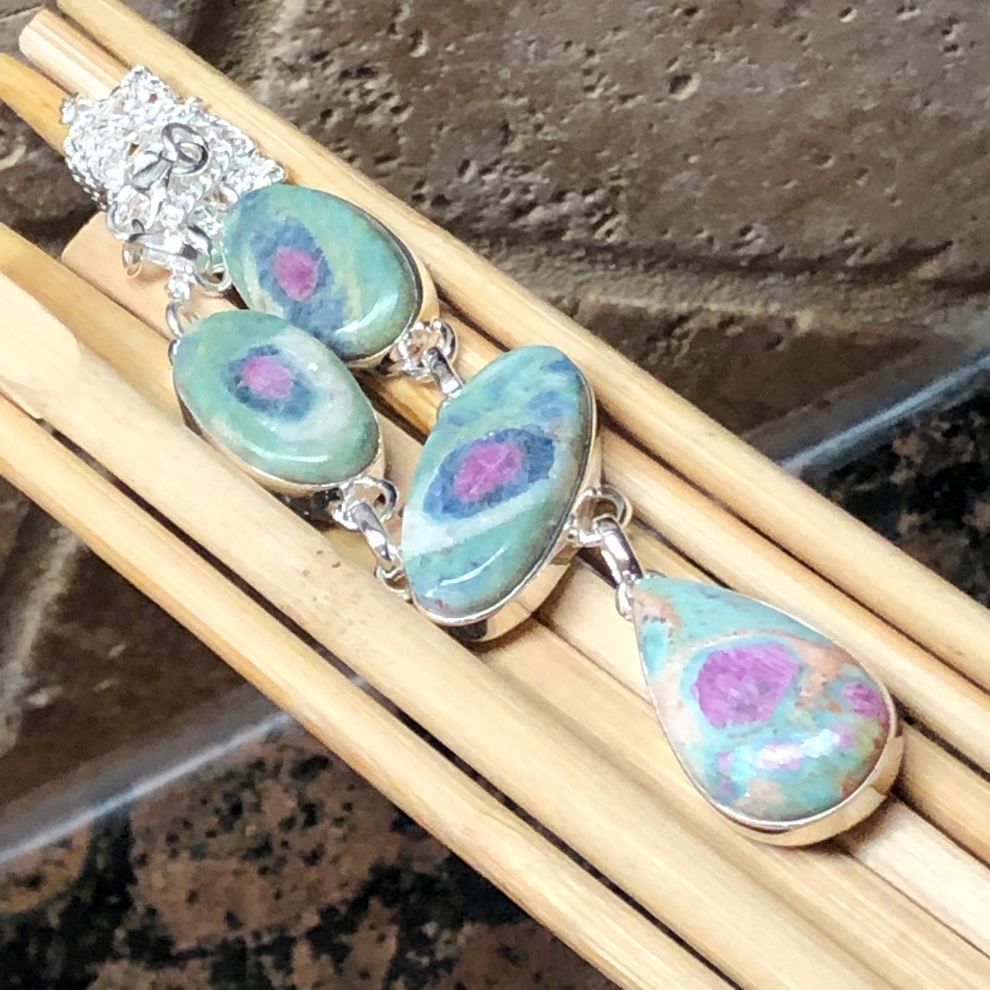 Natural Ruby in Fuchsite 925 Solid Sterling Silver Necklace 18"