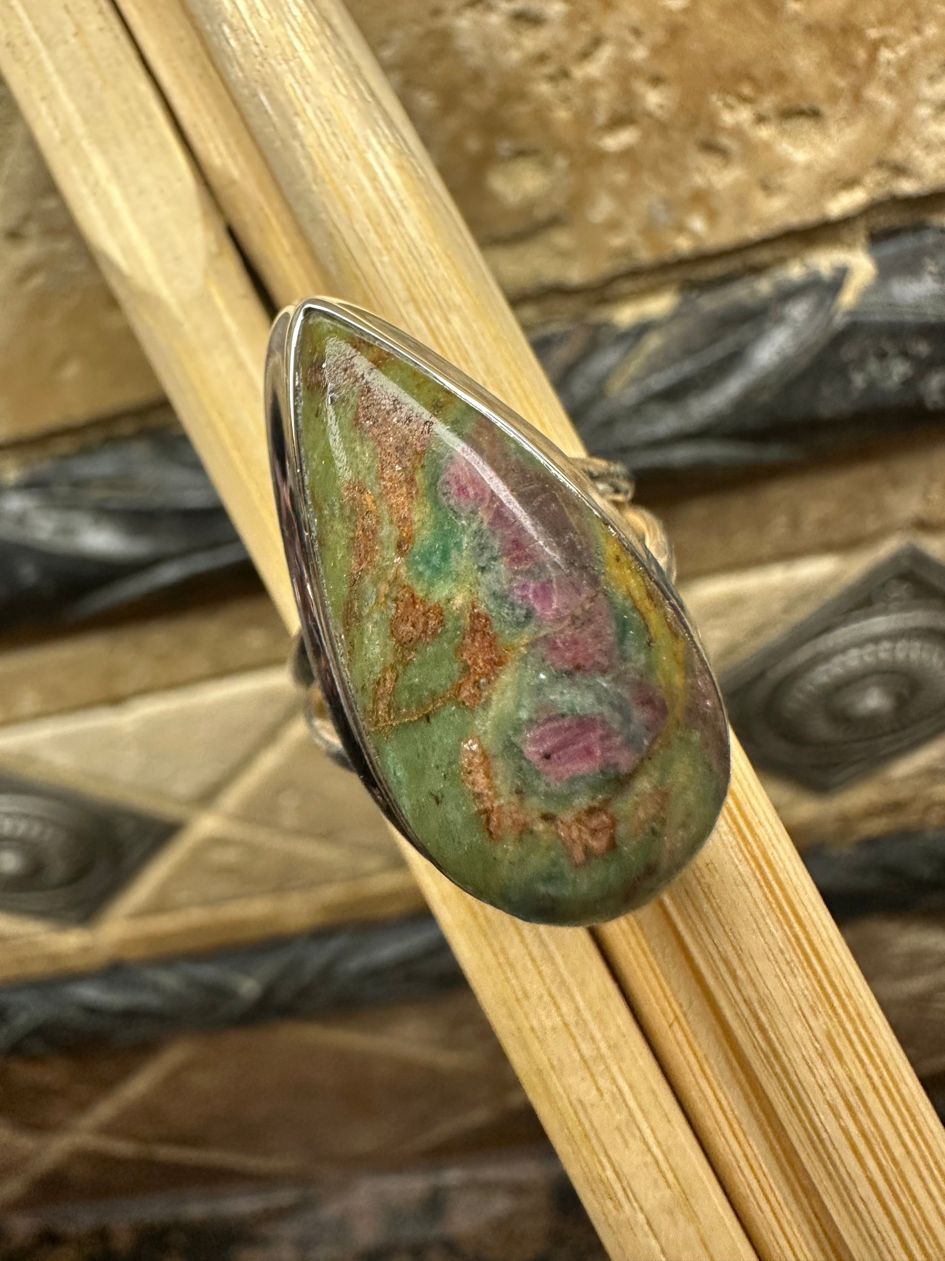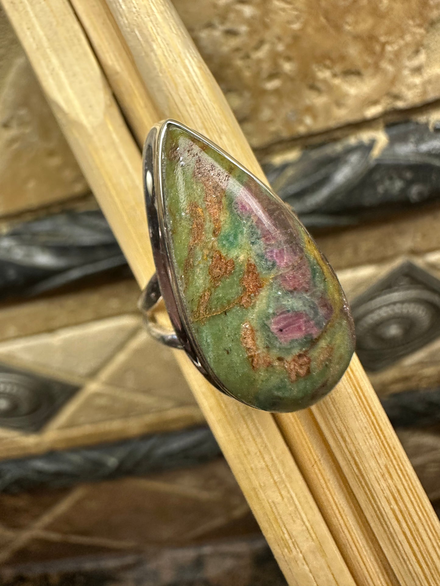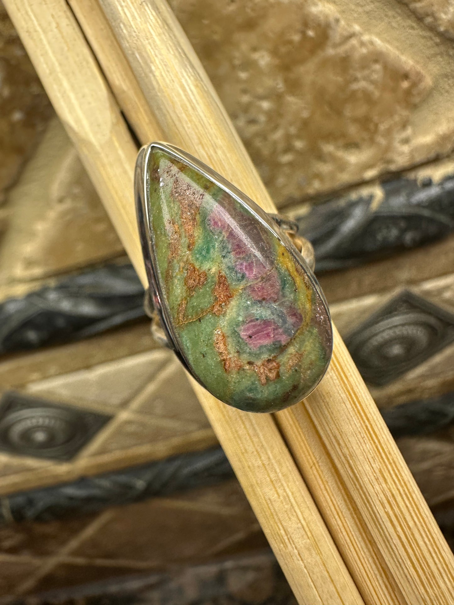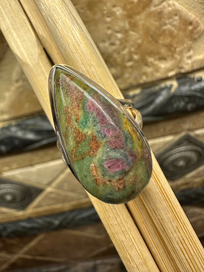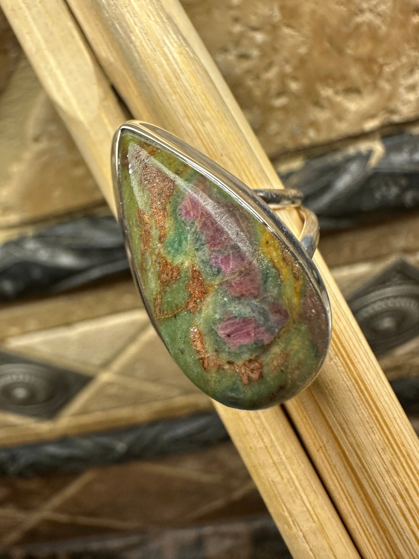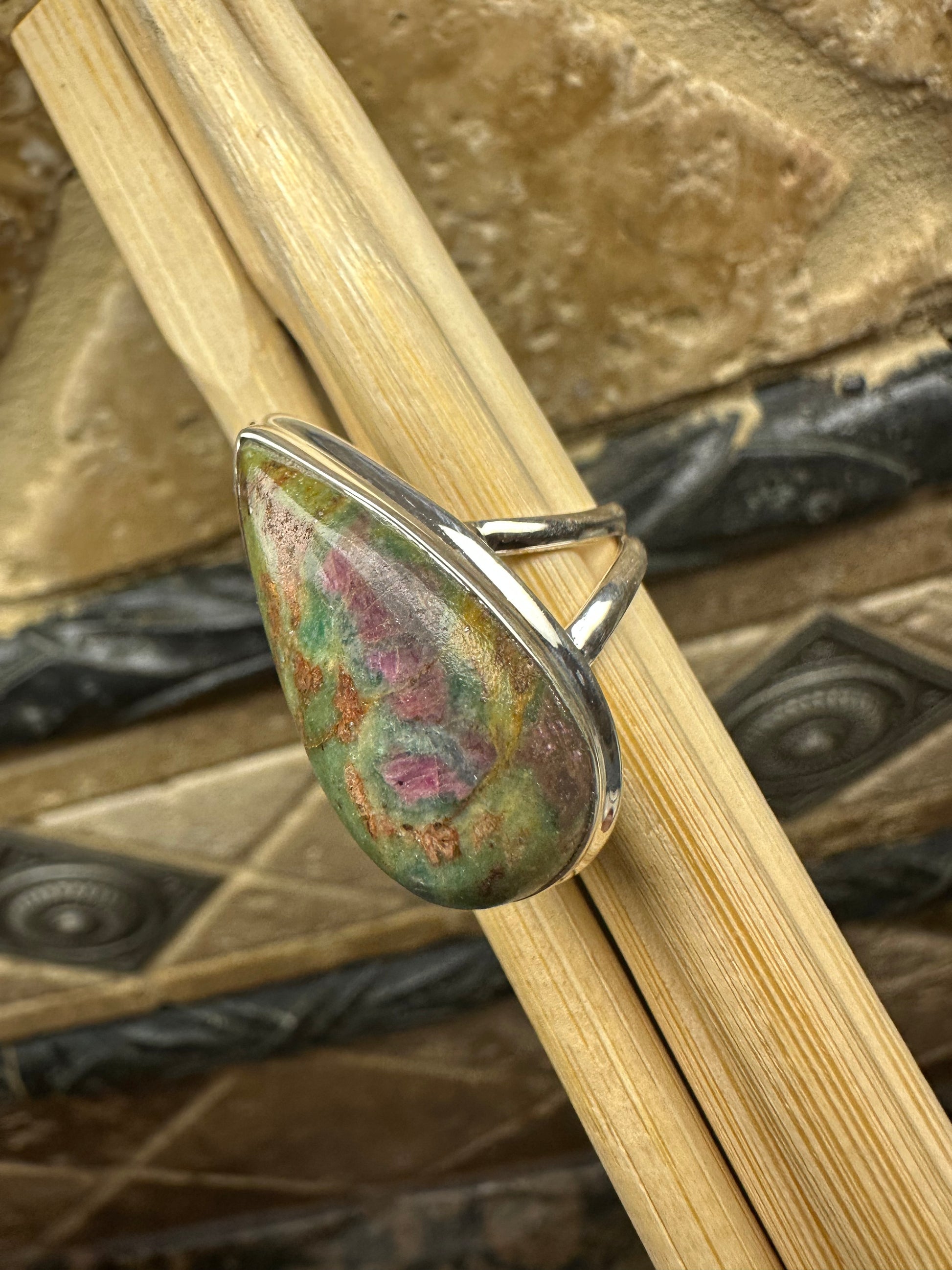 Natural Ruby in Fuchsite 925 Solid Sterling Silver Ring Size 8.25