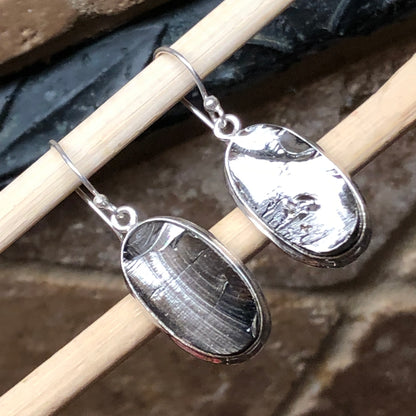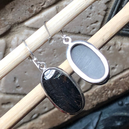 Natural Shungite 925 Solid Sterling Silver Earrings 35mm