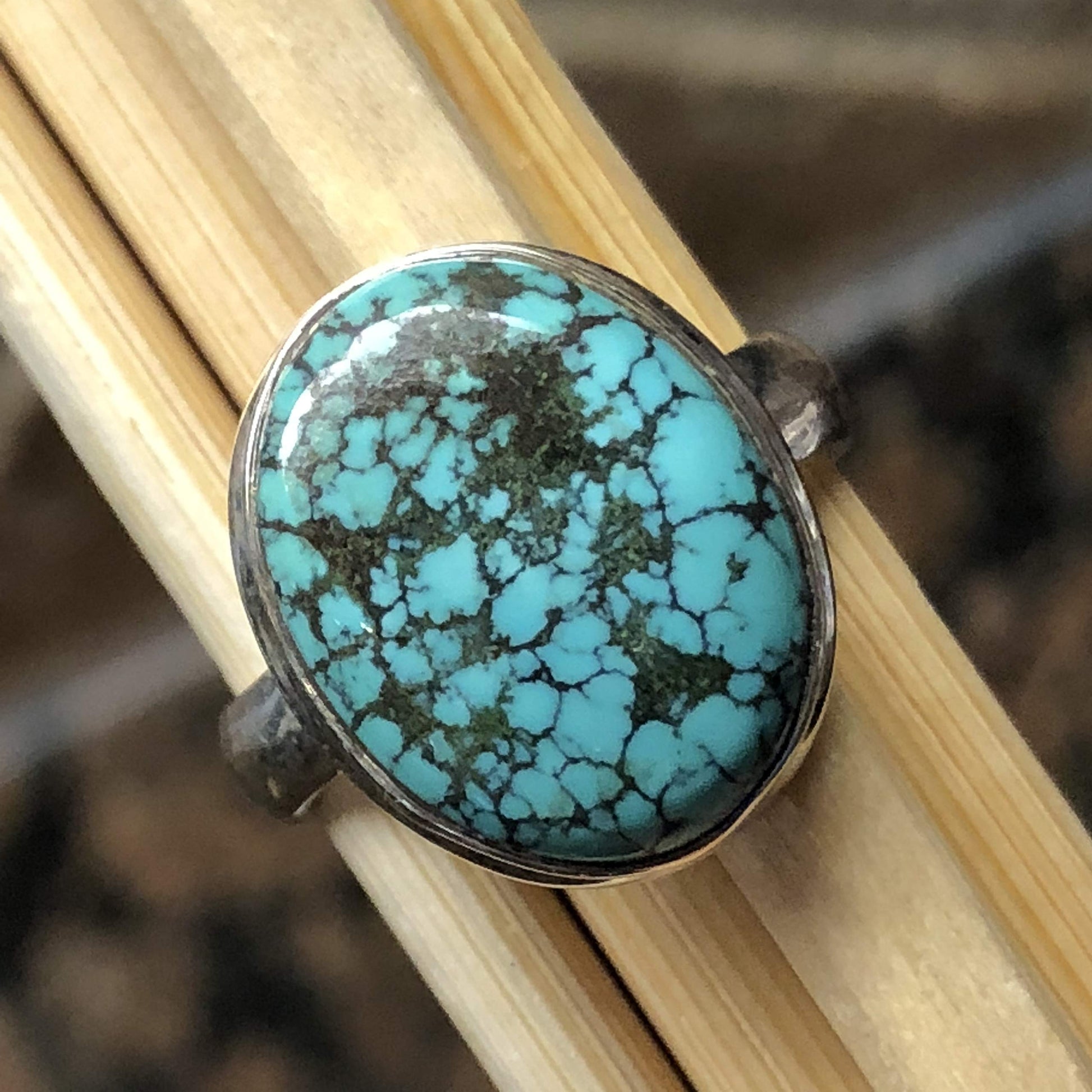Natural Blue Spider Turquoise 925 Solid Sterling Silver Ring Size 6.75