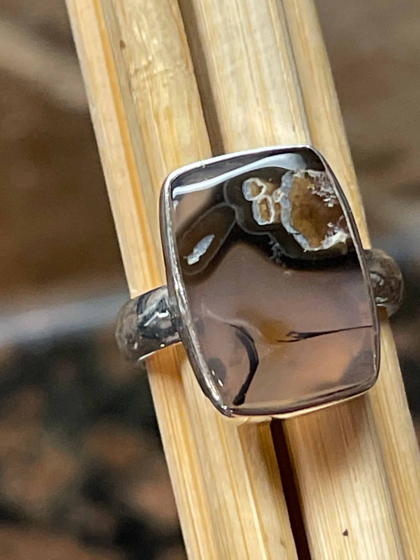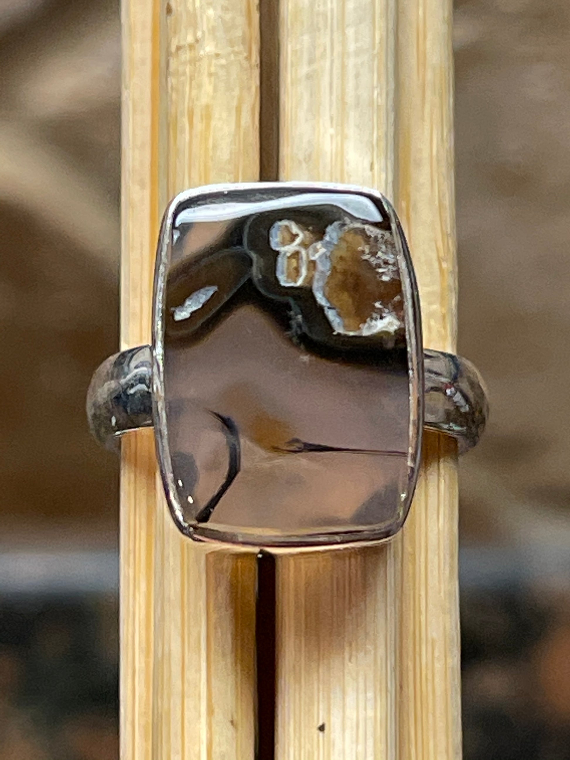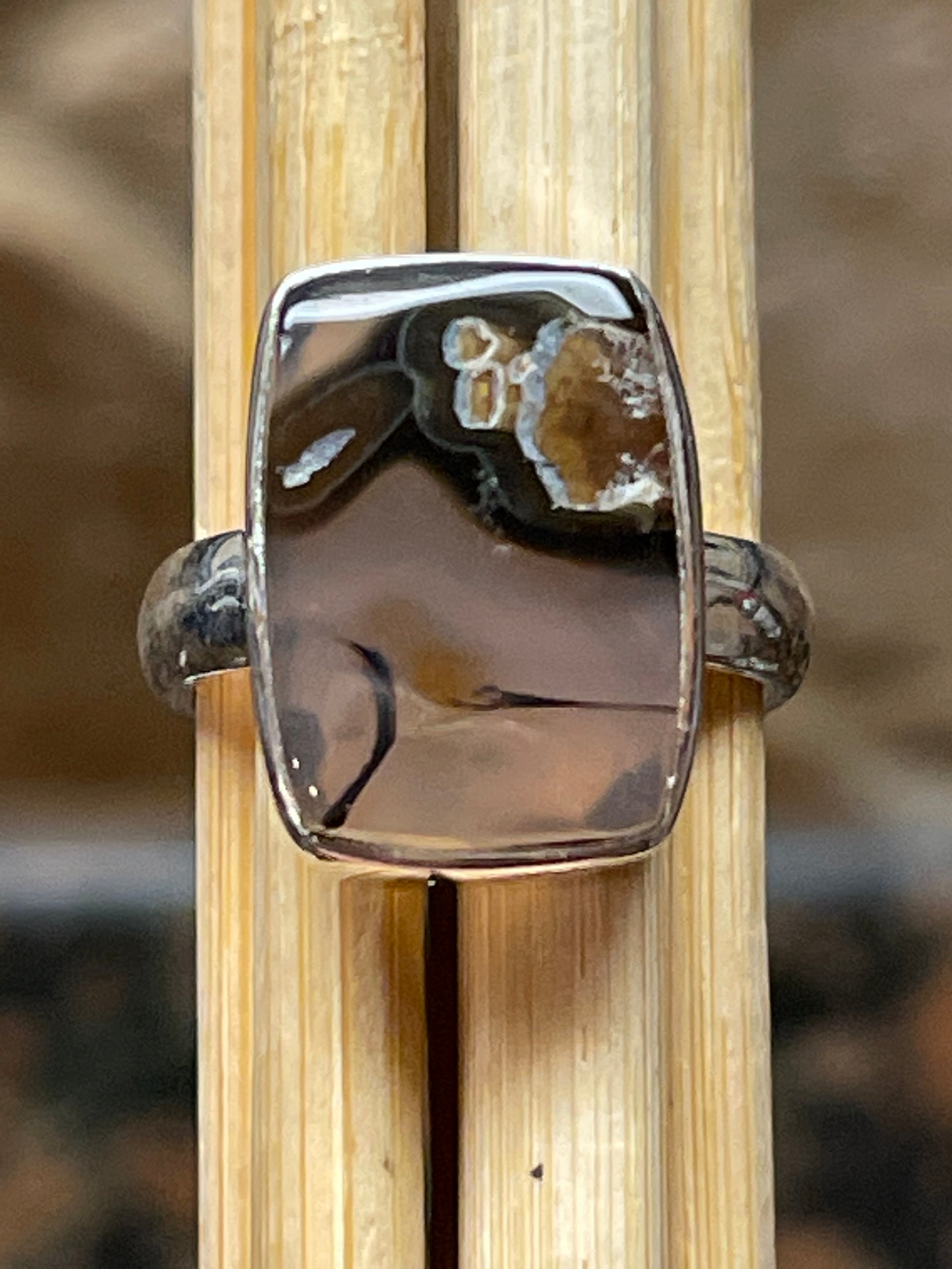 Natural Turkish Stick Agate 925 Sterling Silver Ring Size 6.25