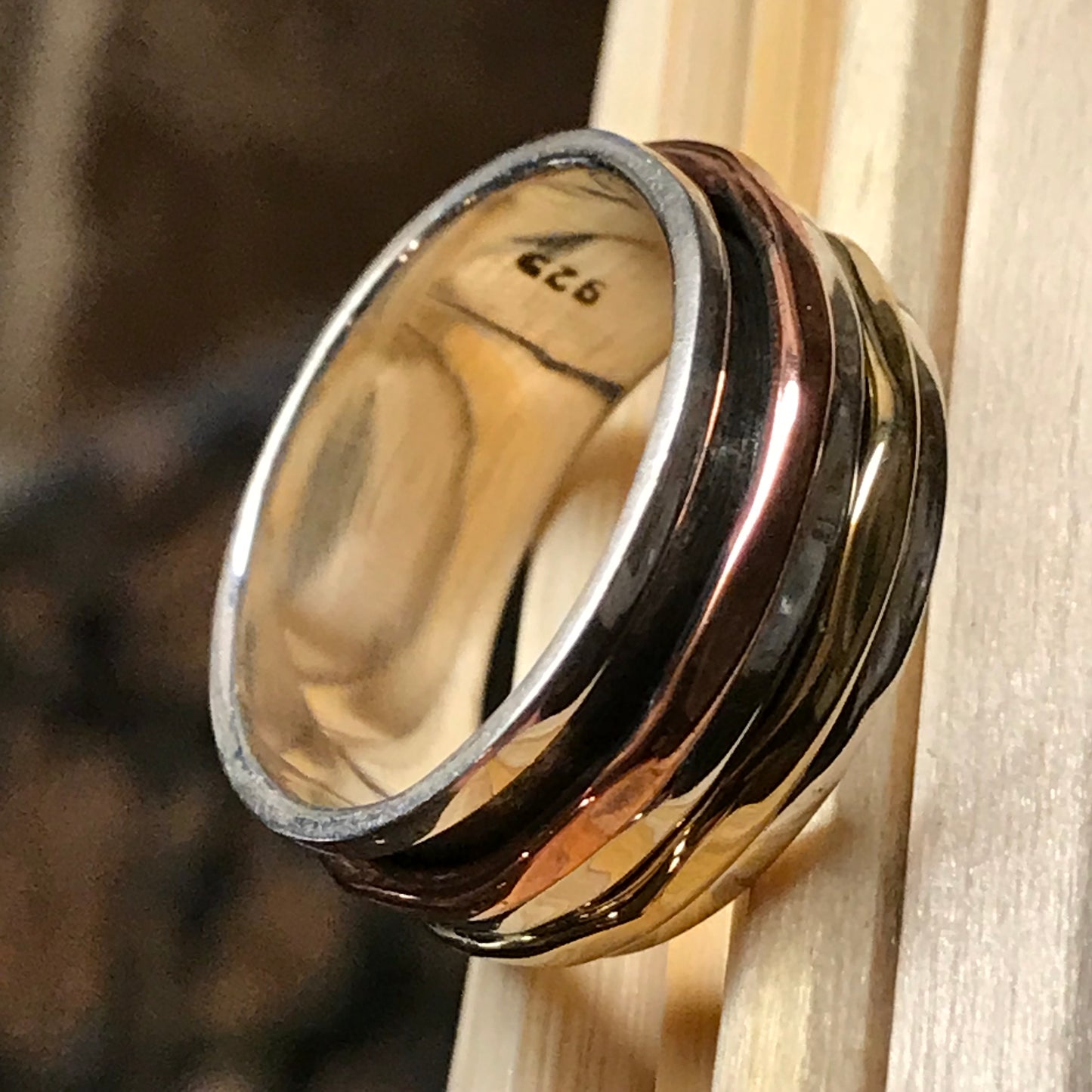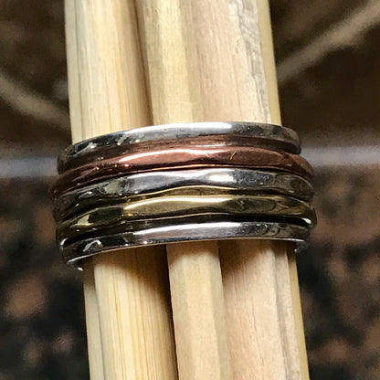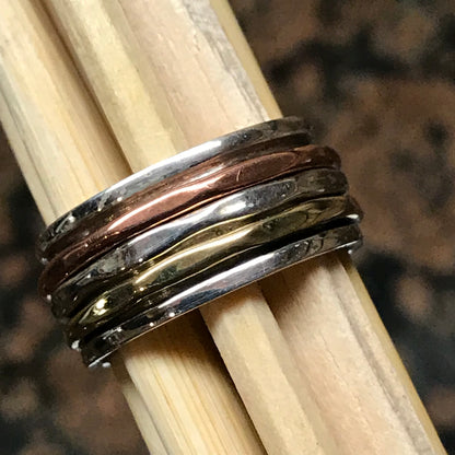 Textured, Hammered spinner wide band 925 Solid Sterling Silver Unisex Ring 6, 7, 8, 9